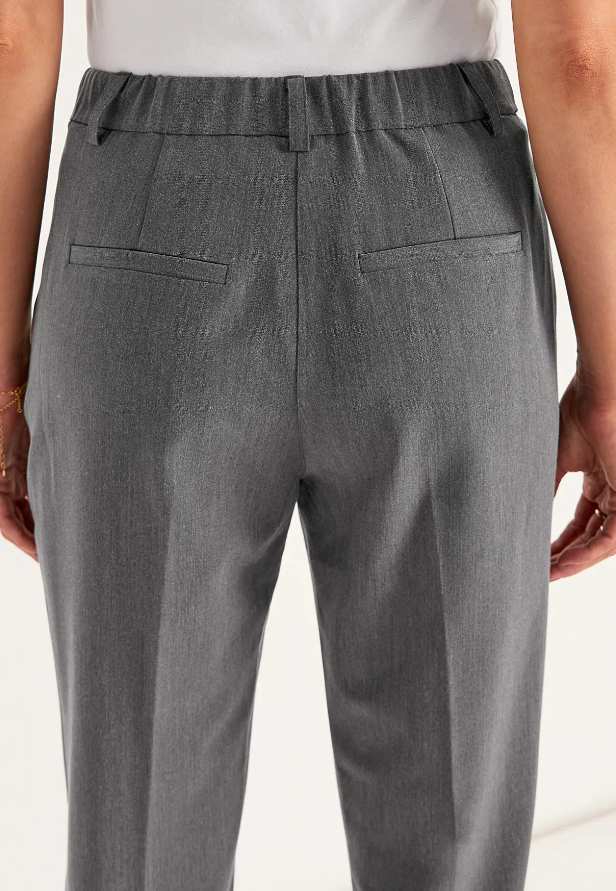 • Lige pasform med indsnævrende ben.