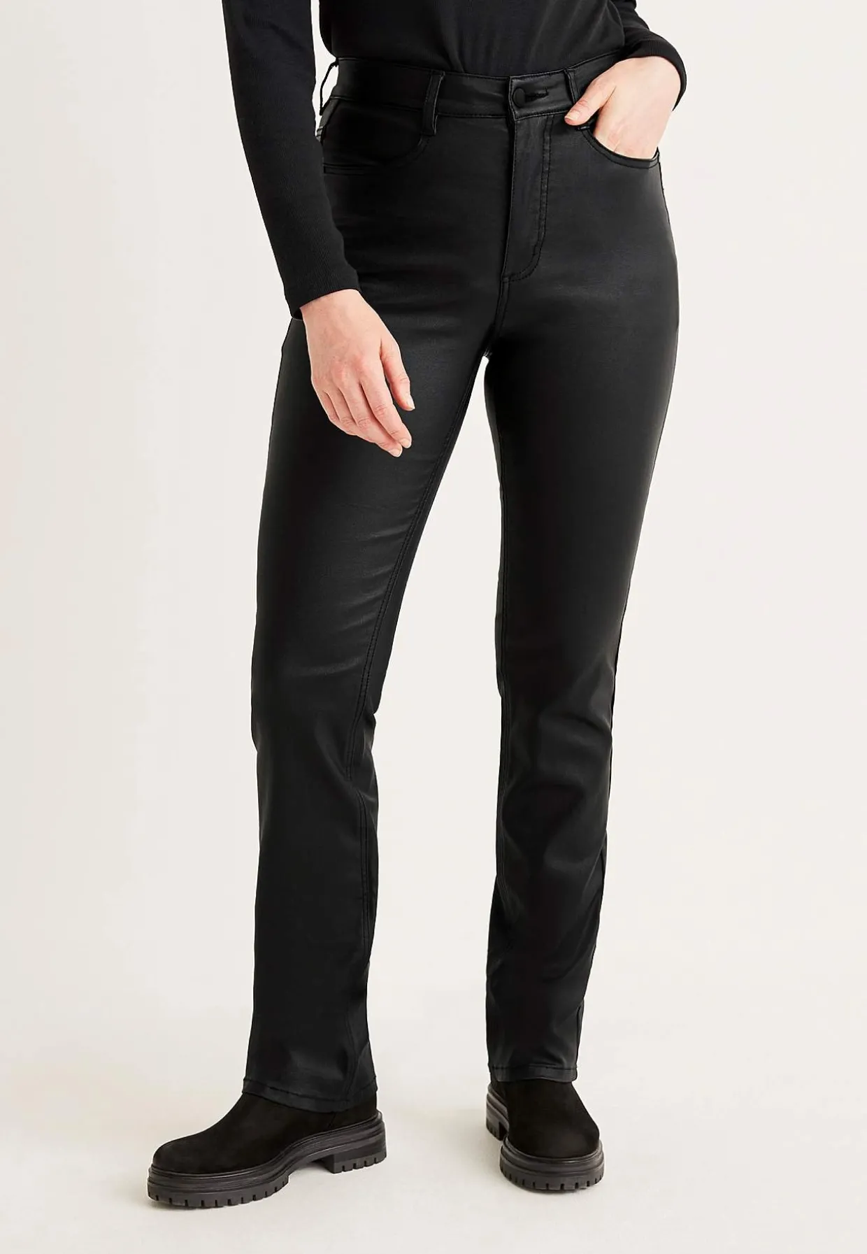 • Smal pasform med lige benafslutning