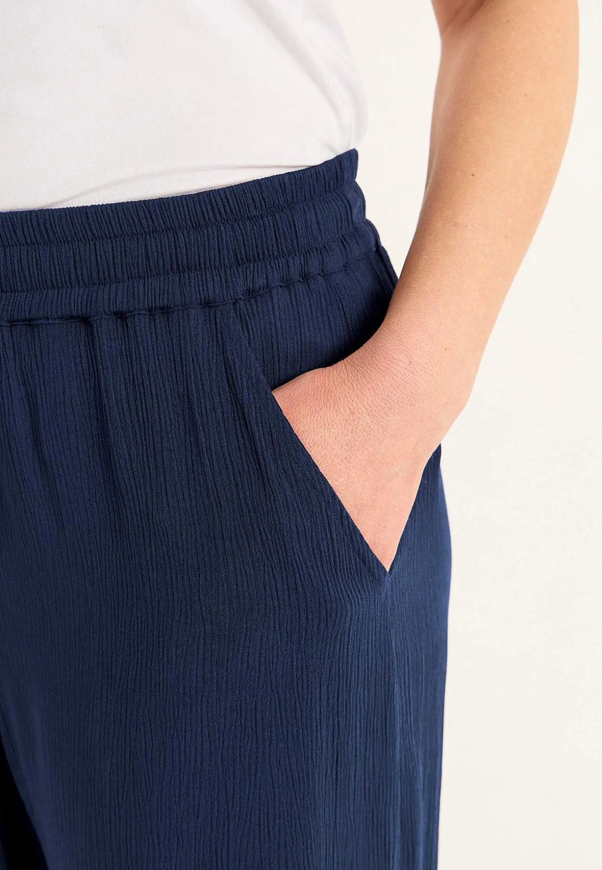 • Bred, blød elastisk linning med snoretræk.