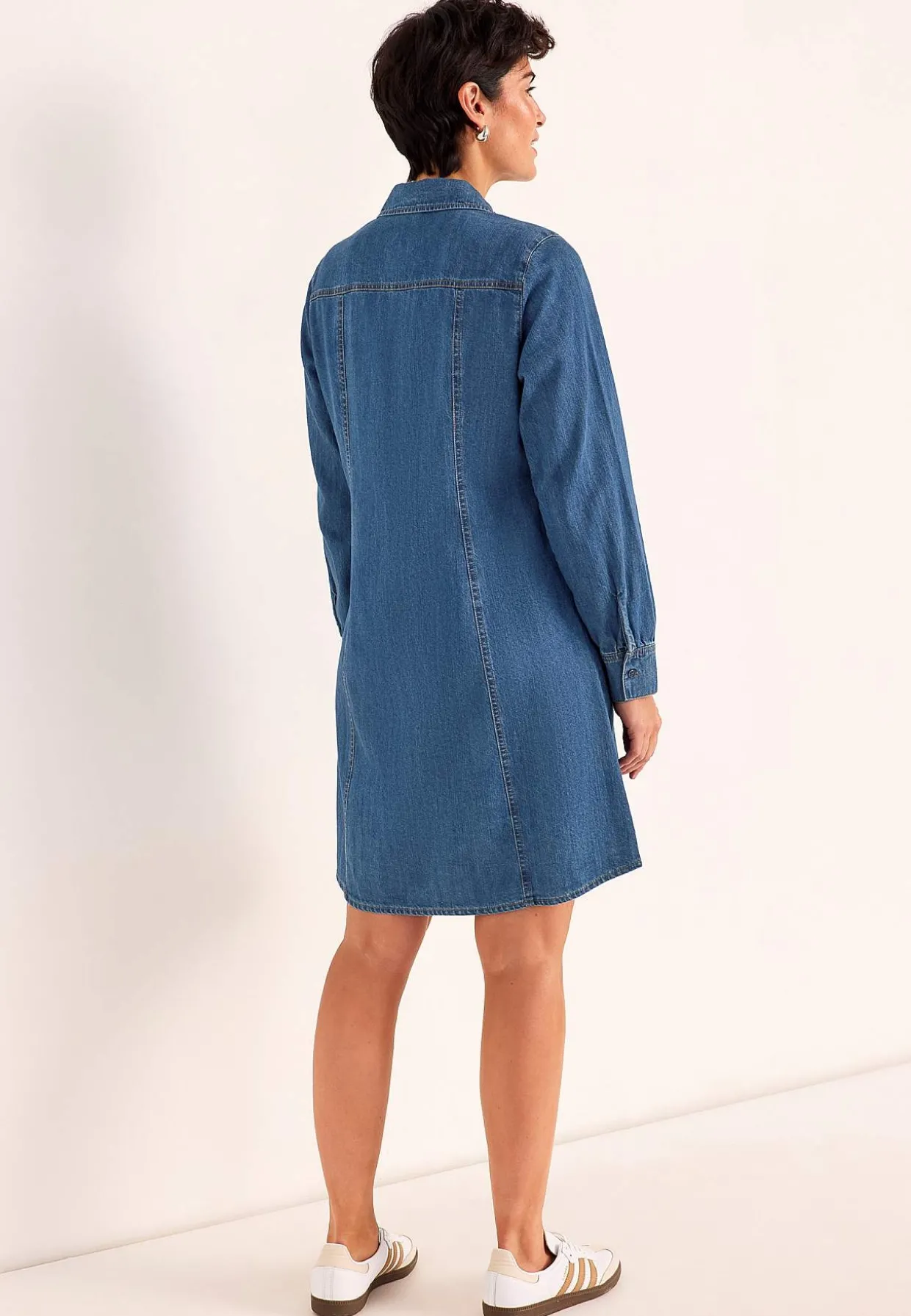 • Lange ærmer med manchet og knap ved manchetterne.