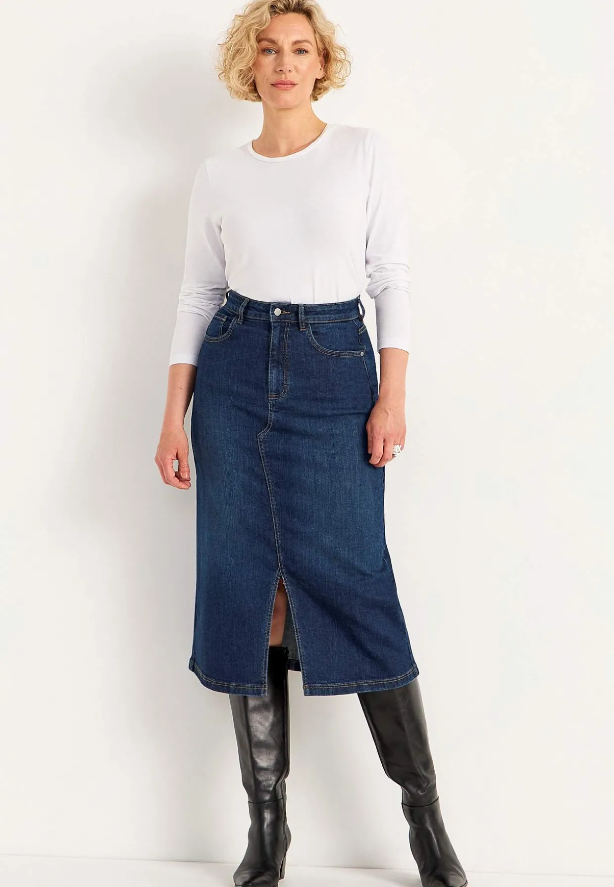 • Stilfuld denimnederdel med slids foran.