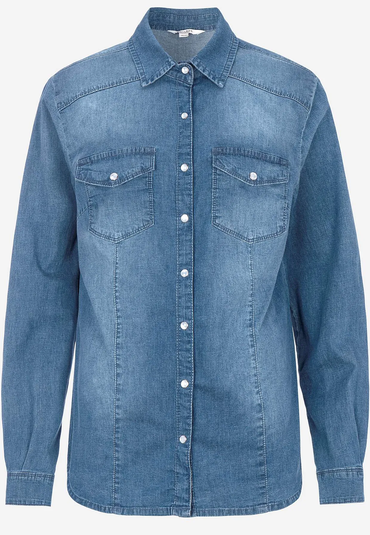 • Klassisk, gennemknappet model i blød, smidig strækdenim.