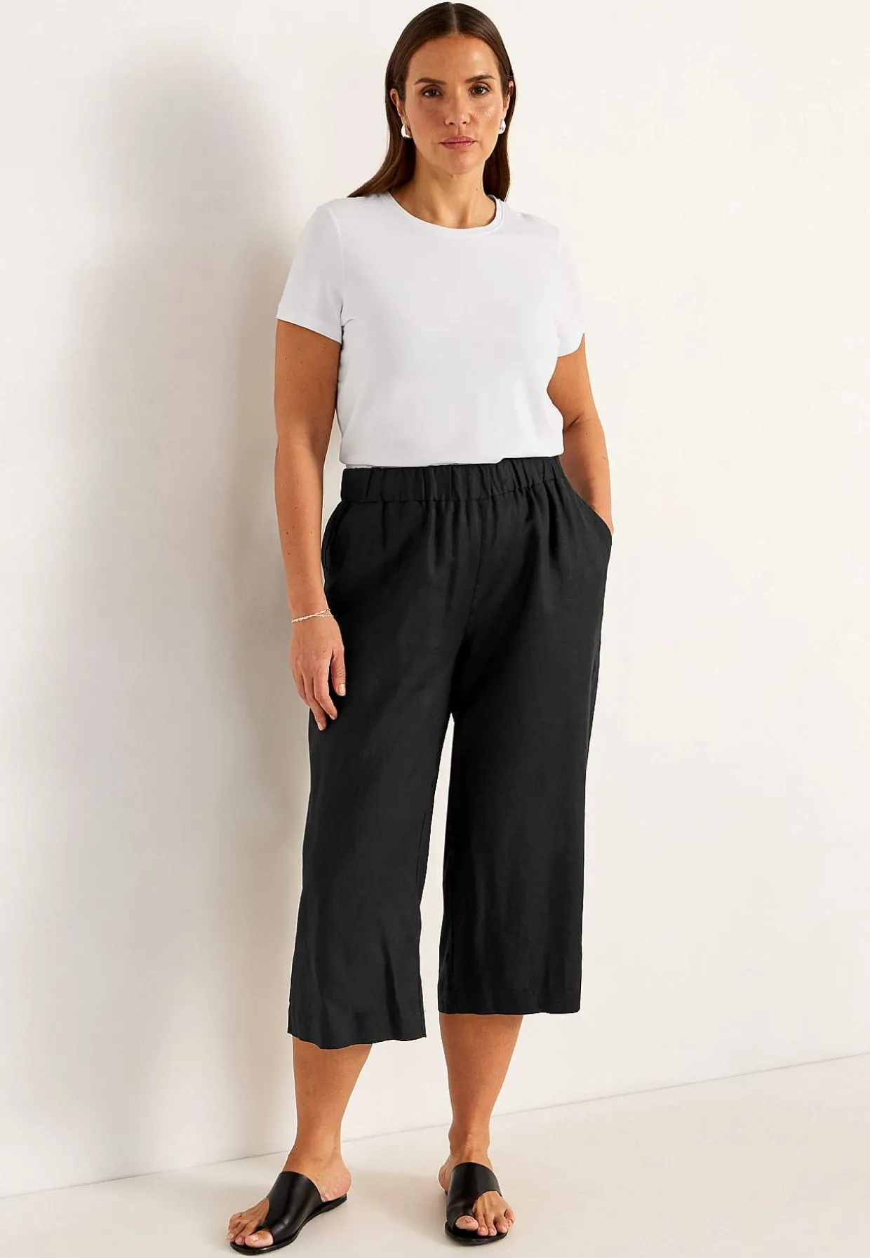 • Vævede hørbukser med brede ben.