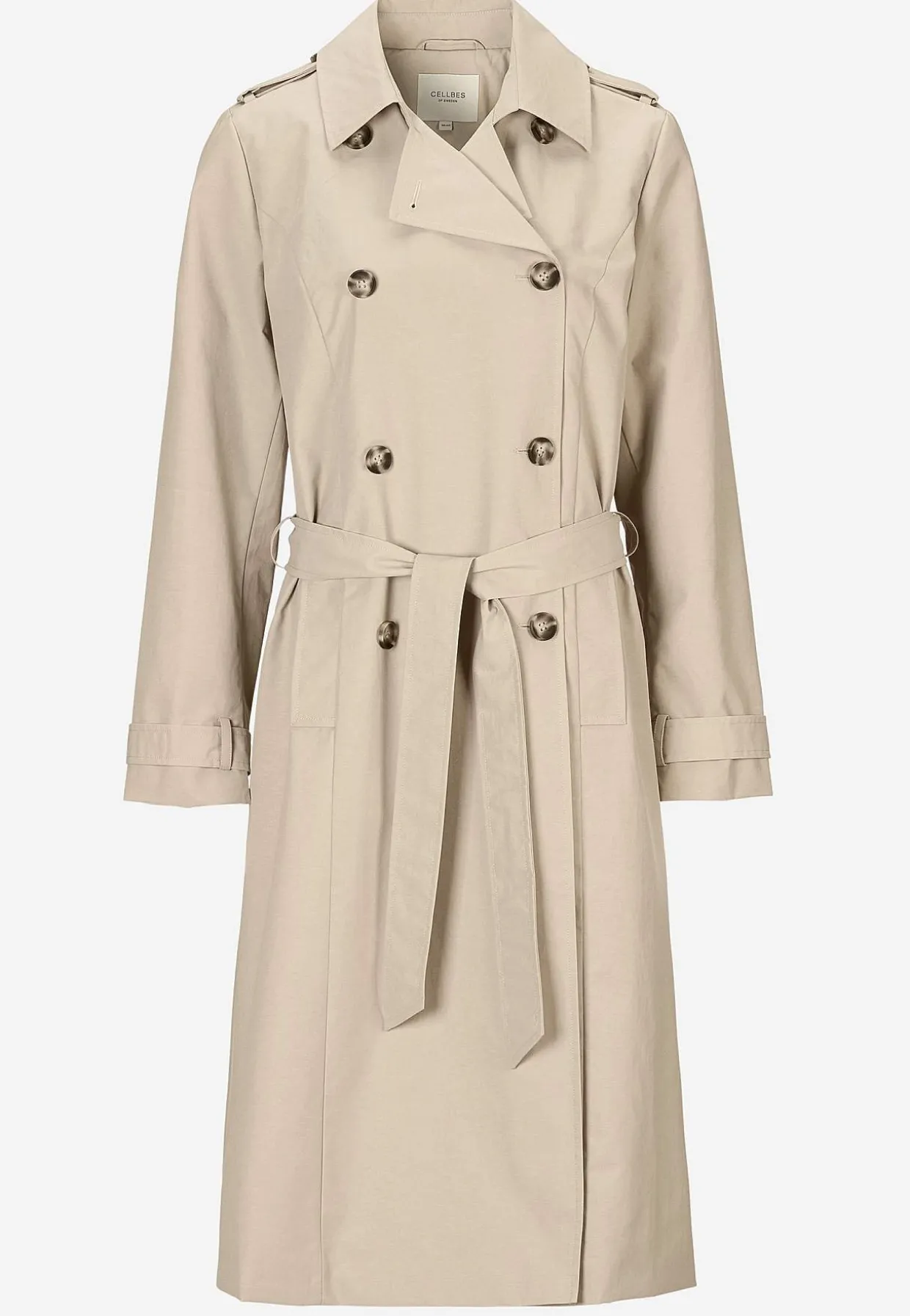 • Dobbeltbrystet, helforet trenchcoat med krave.