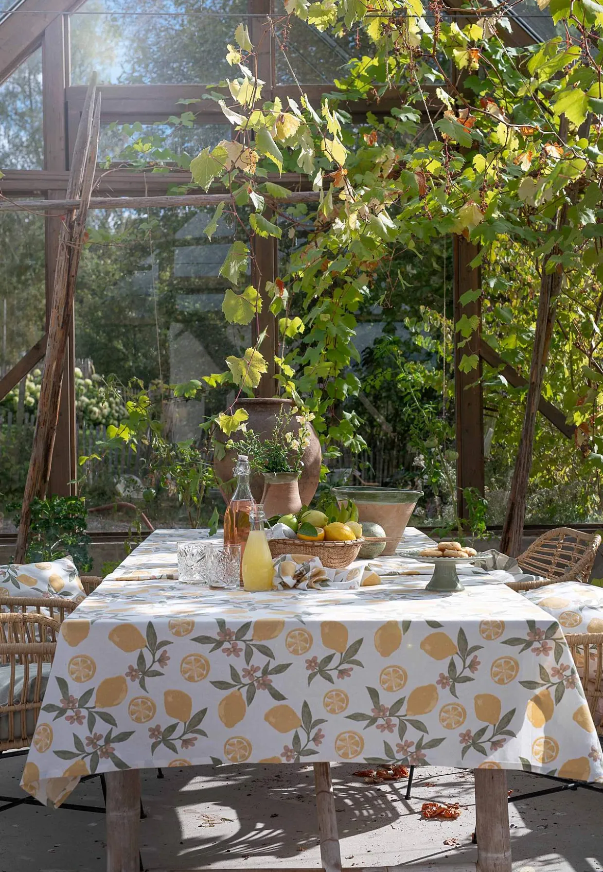 • Dug med herligt citronprint og små blomster med kronblad.