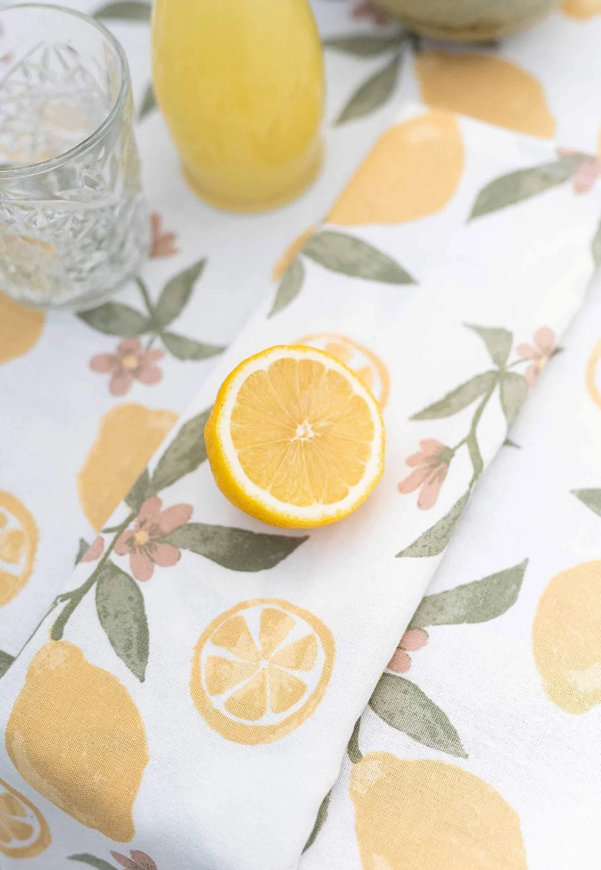 • Dug med herligt citronprint og små blomster med kronblad.