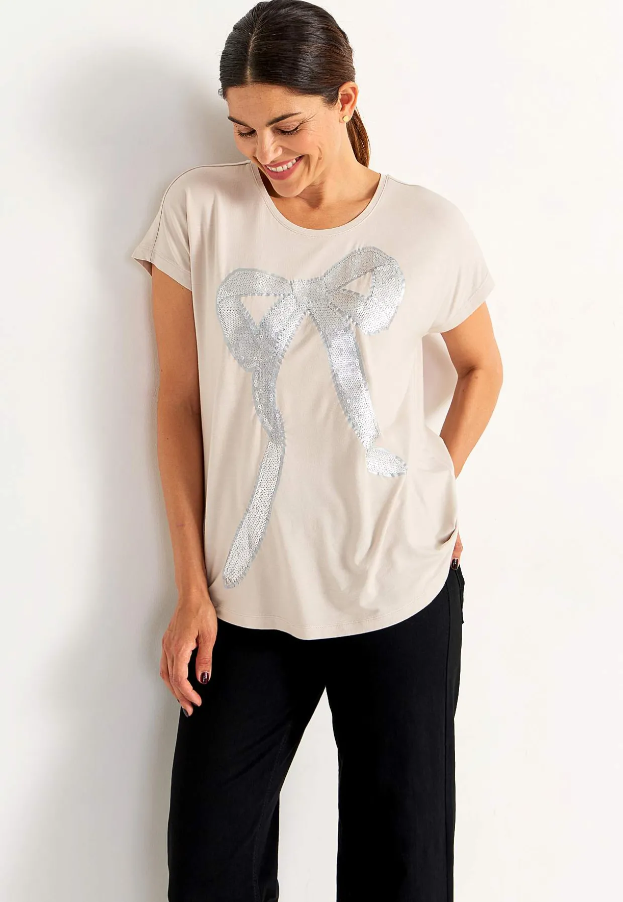 • Sløjfeapplikation med pailleter.