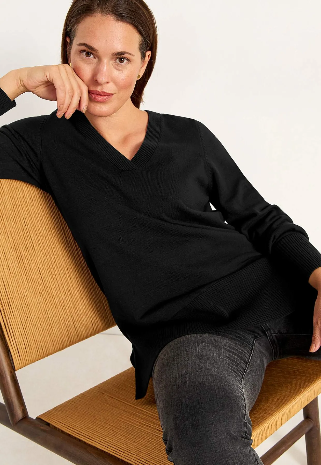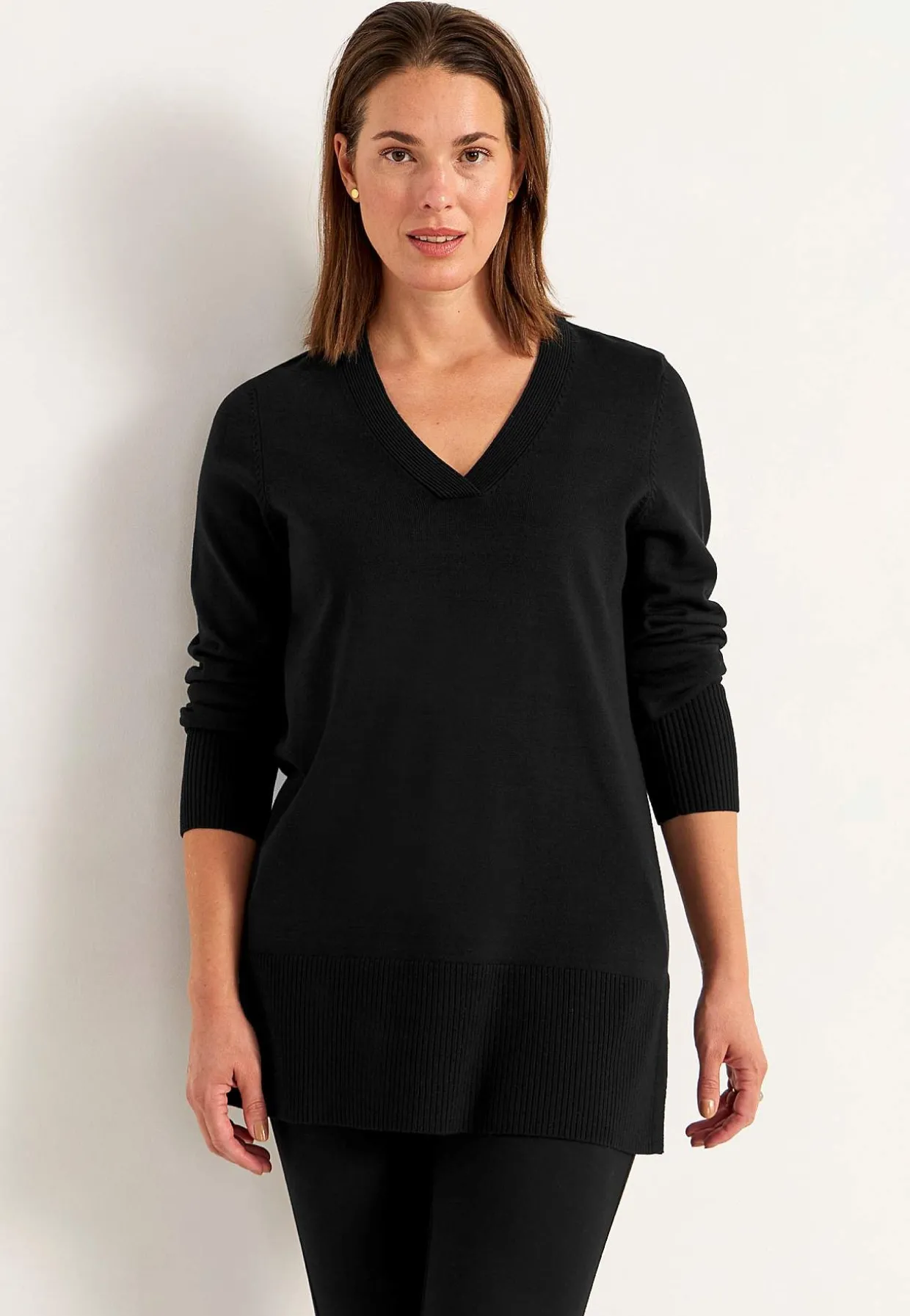 • Lange ærmer med bred ribmanchet. Fuldt formstrikkede ærmegab.
