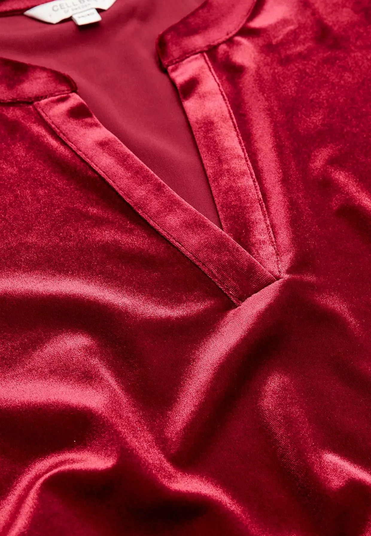 • 3/4 lange ærmer med tynd manchet og samling ved manchetterne.