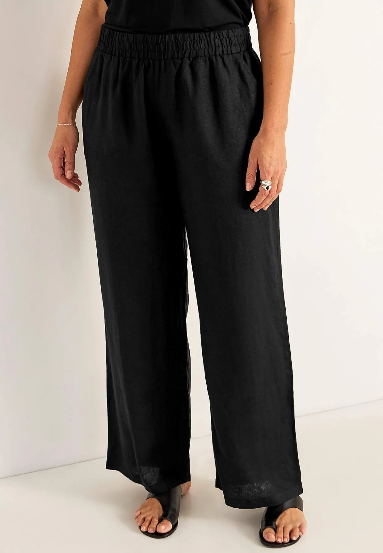 • Vævede hørbukser med brede ben.
