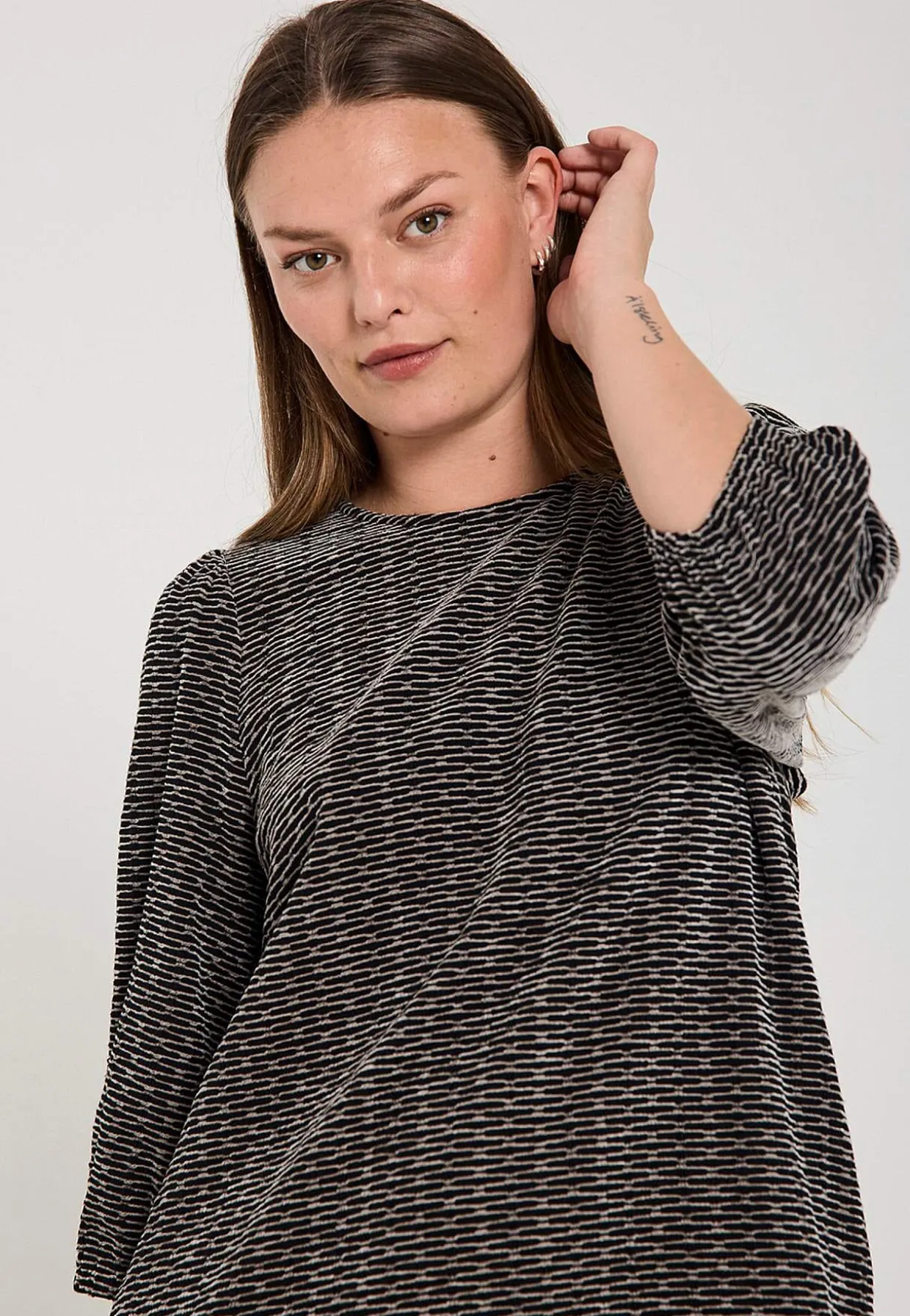 • 3/4 lange, brede pufærmer med elastik ved manchetterne.