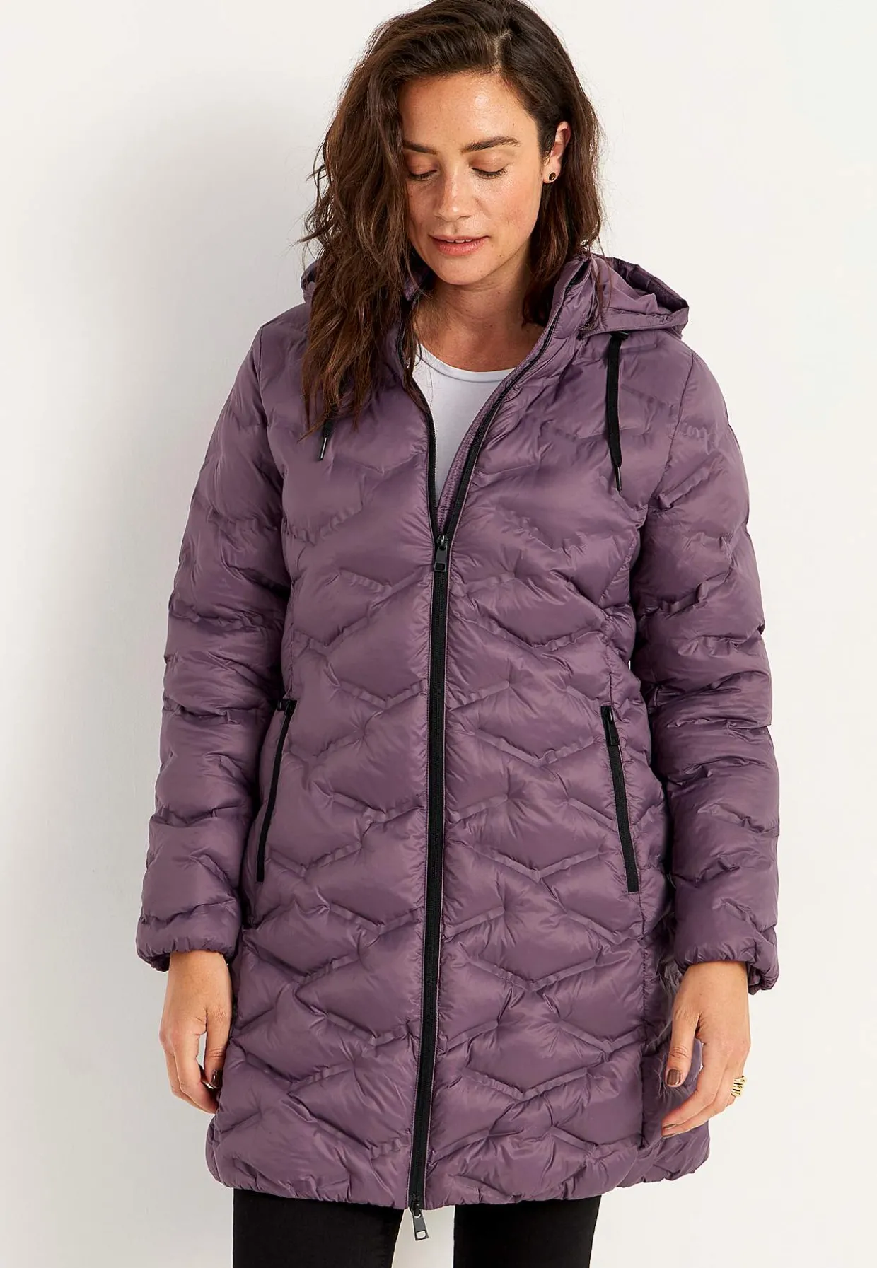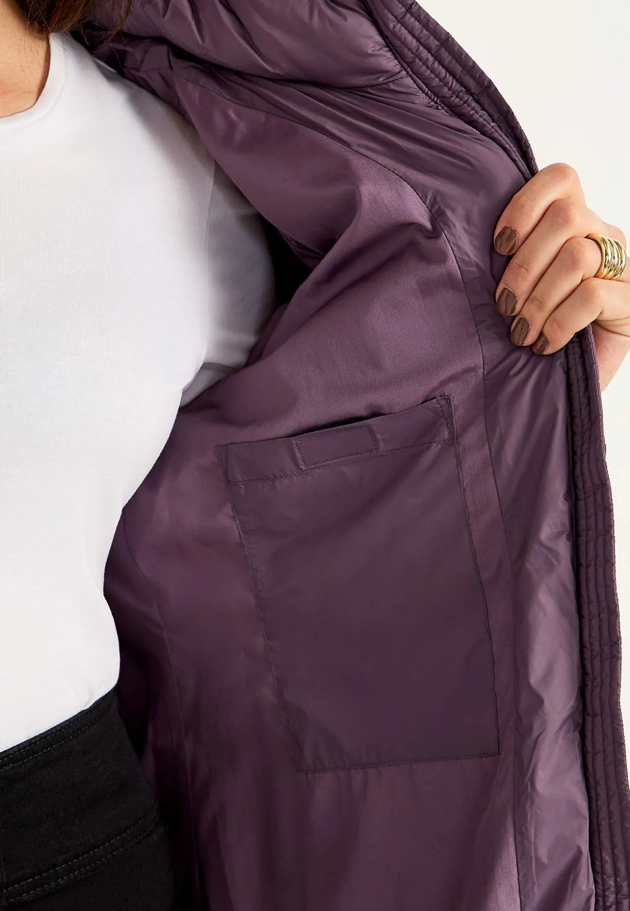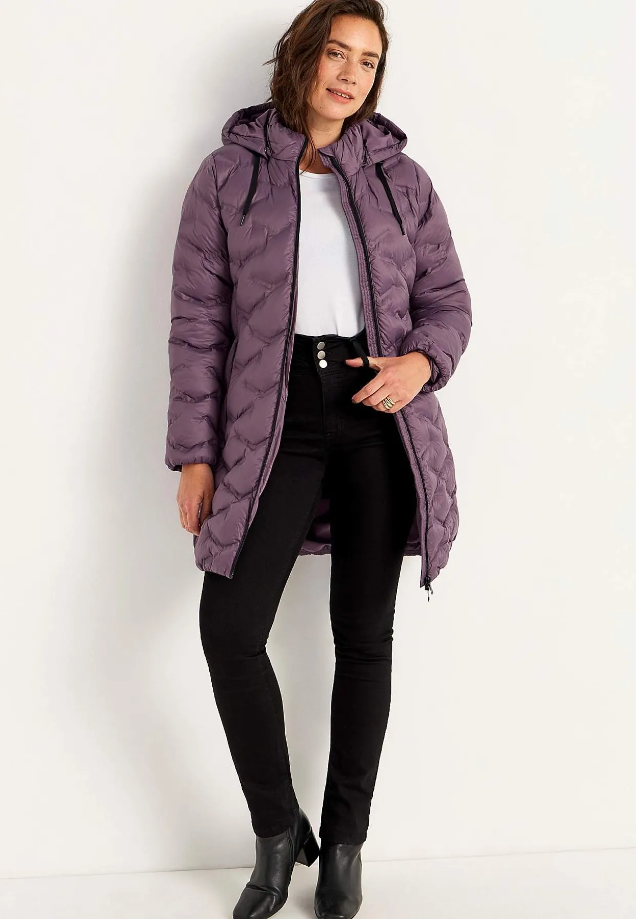 • Aftagelig, foret hætte med træksnøre og stopper.