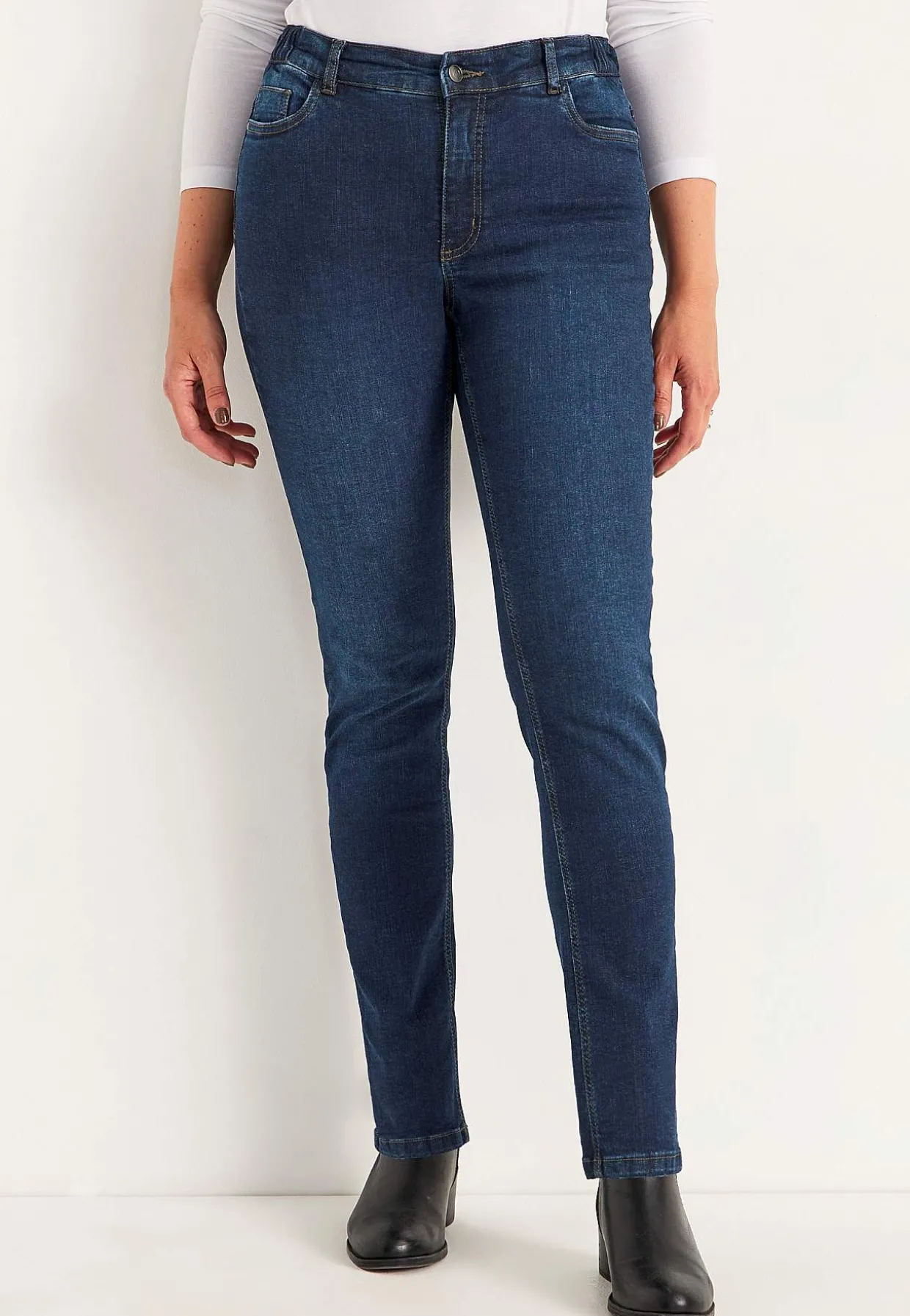 Smal, lige model med elastik i siderne for at gøre jeansene ekstra behagelige at have på.