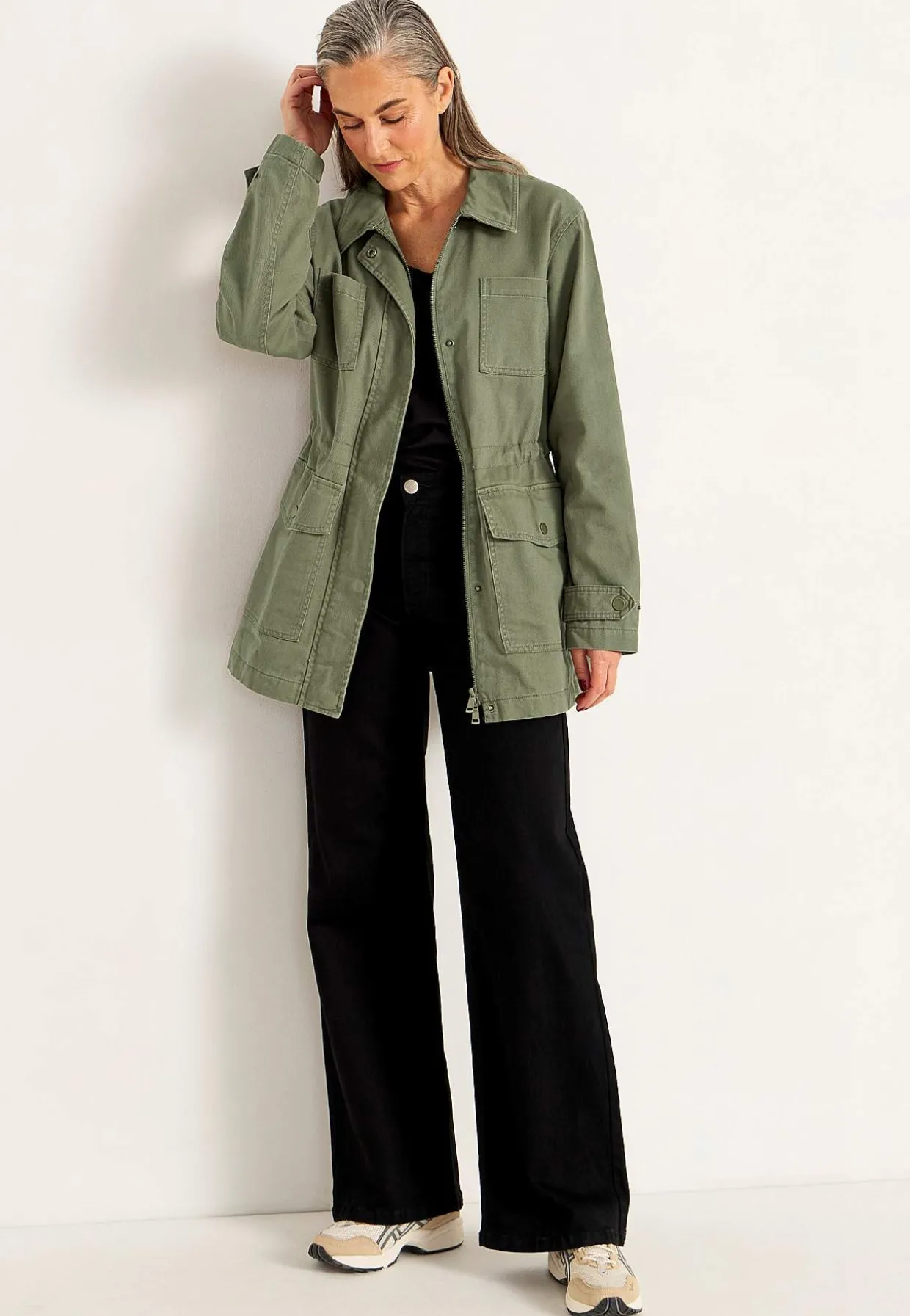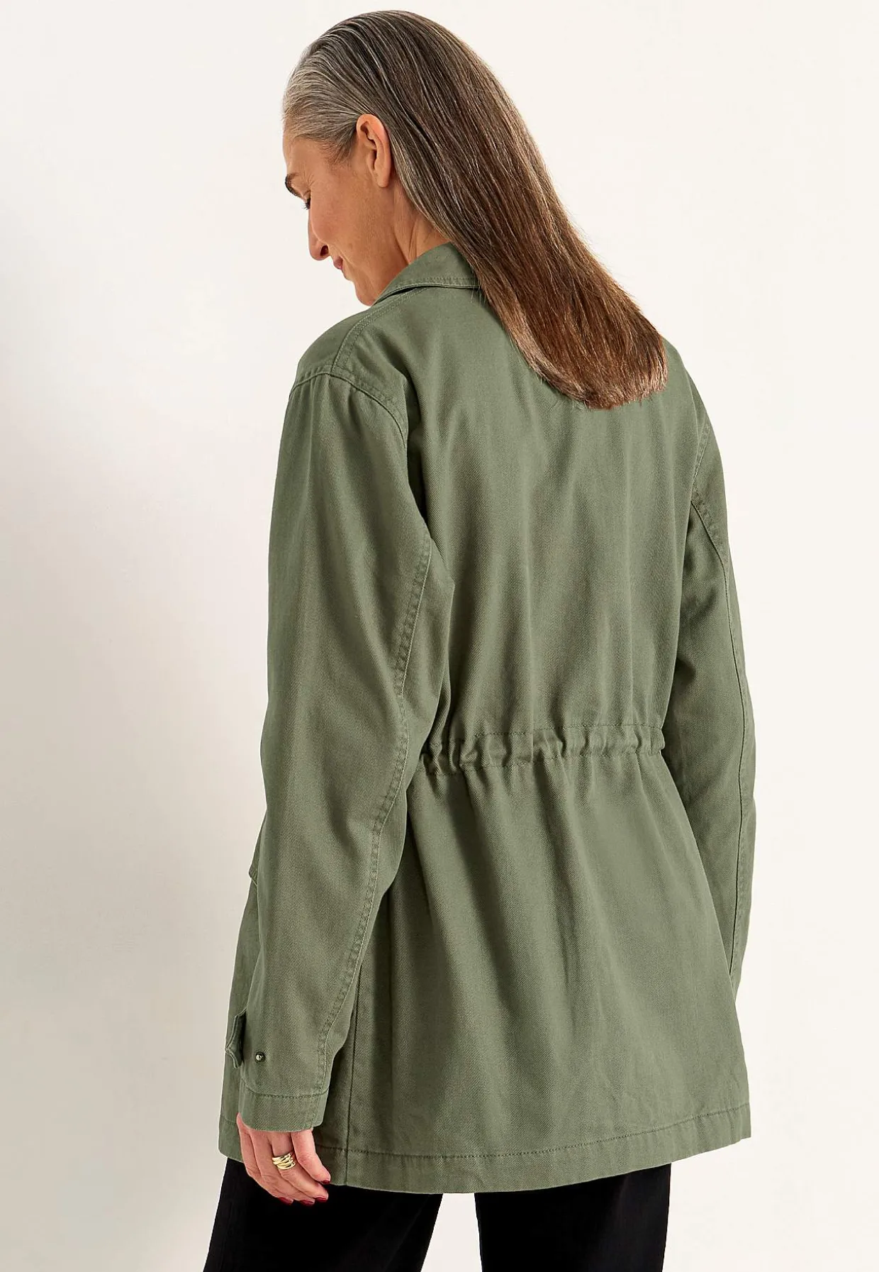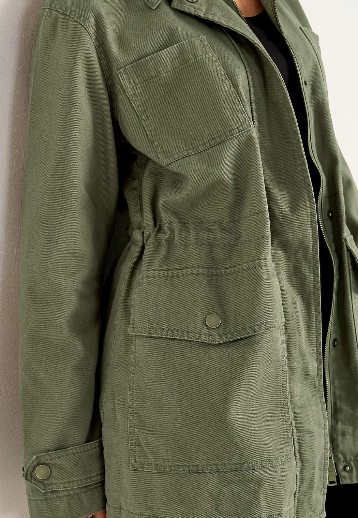 • Khaki green jakke i bomuldstwill.