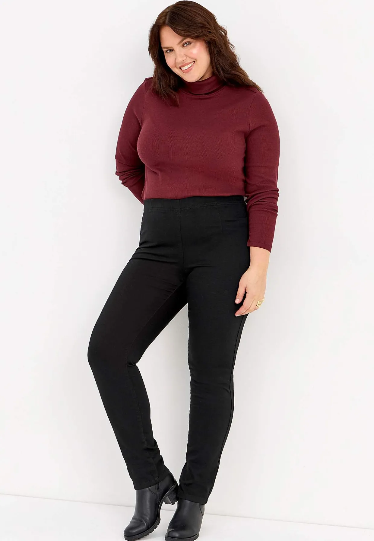 • Figursyet model med smalt ben.