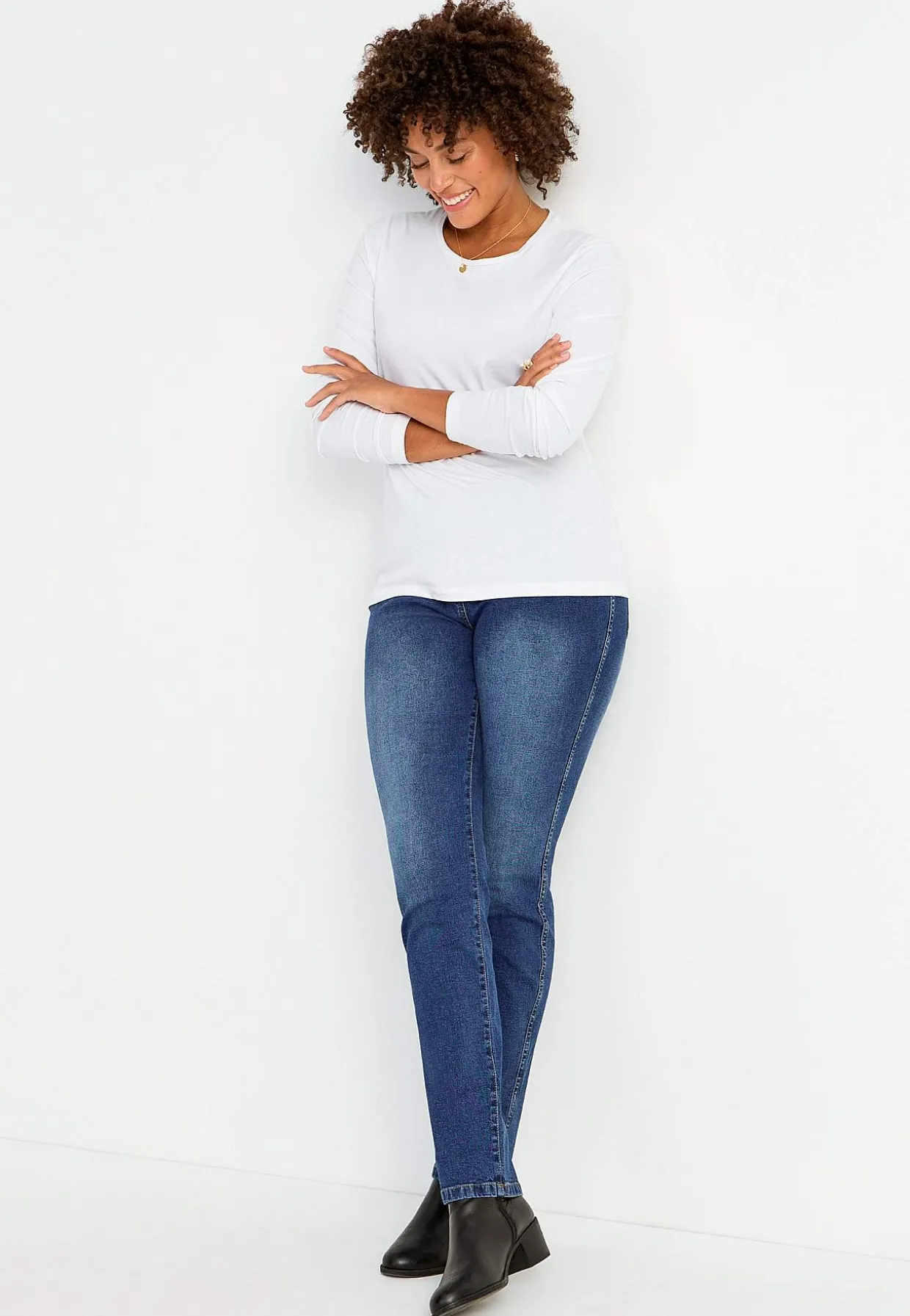 • Figursyet model med smalt ben.