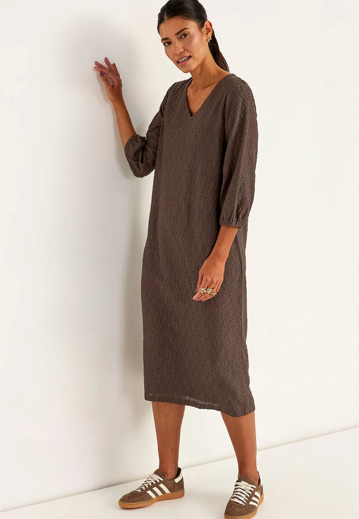 • Trekvartlange, uforede ærmer med elastik ved manchetterne.