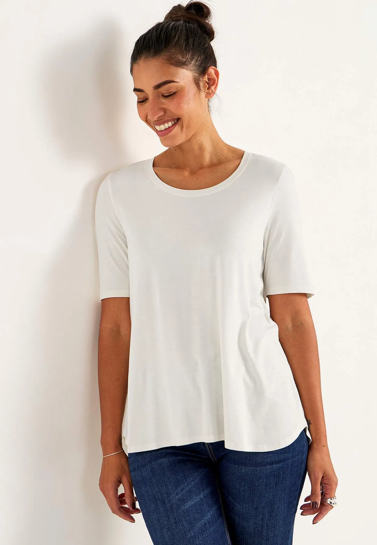 • Afrundet, bred halsudskæring.