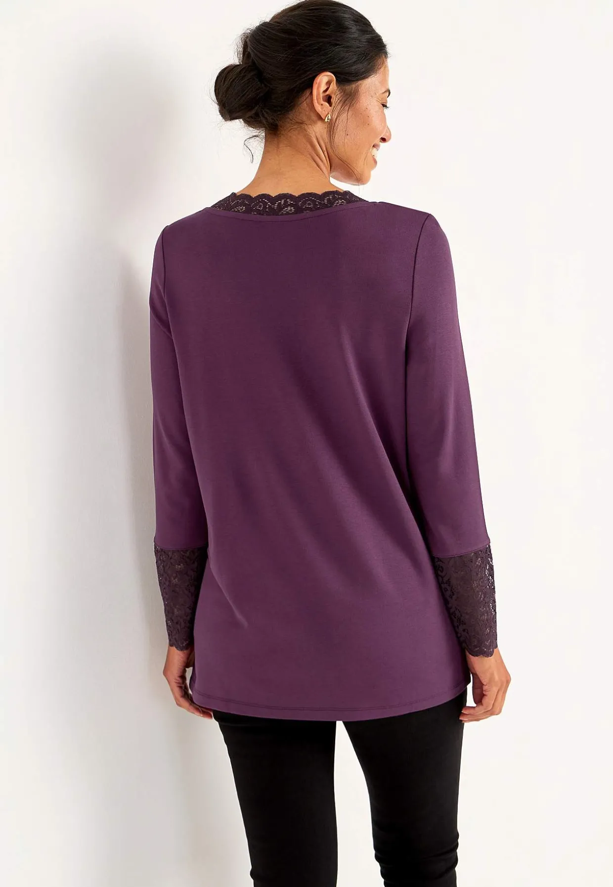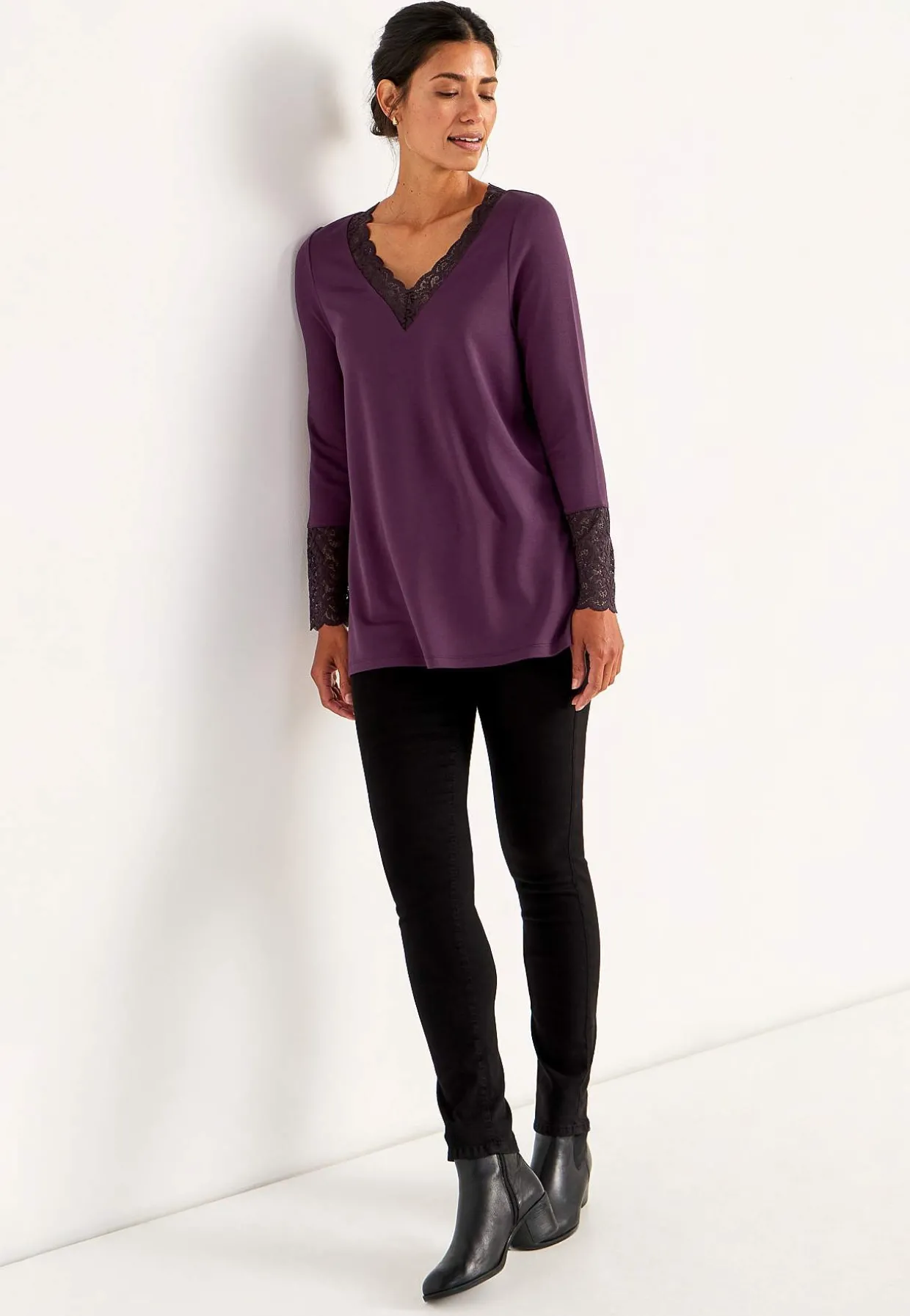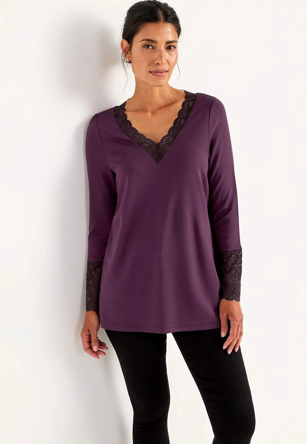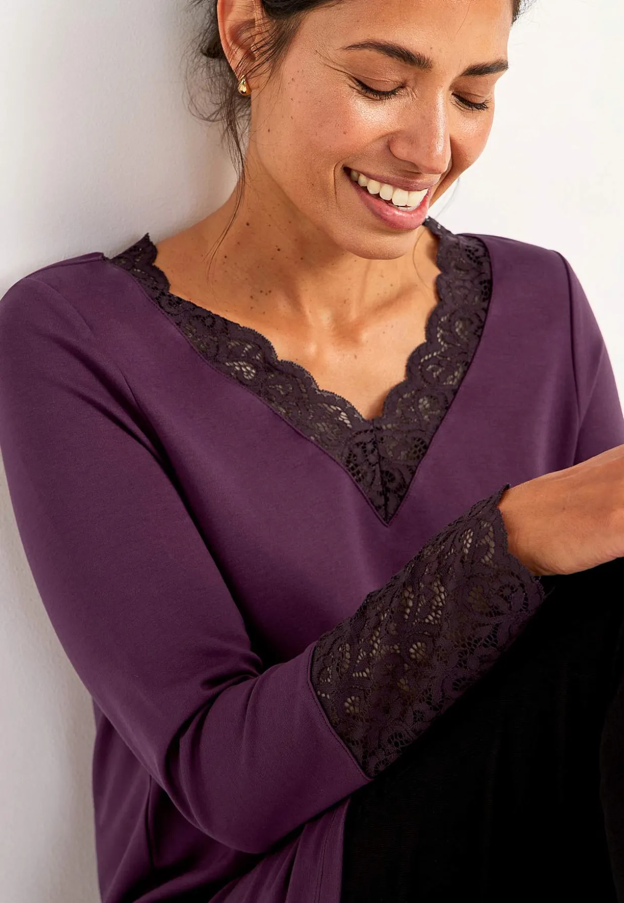 • Halsudskæring med v-udskæring og blonde.