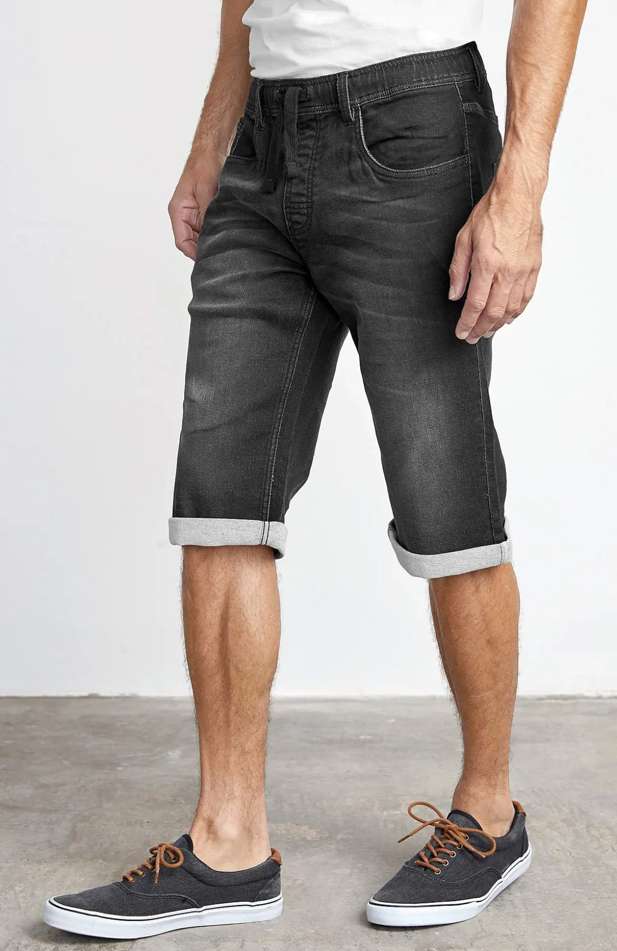 • Afslappet, lidt længere model med godt stræk og plads omkring lår og knæ
