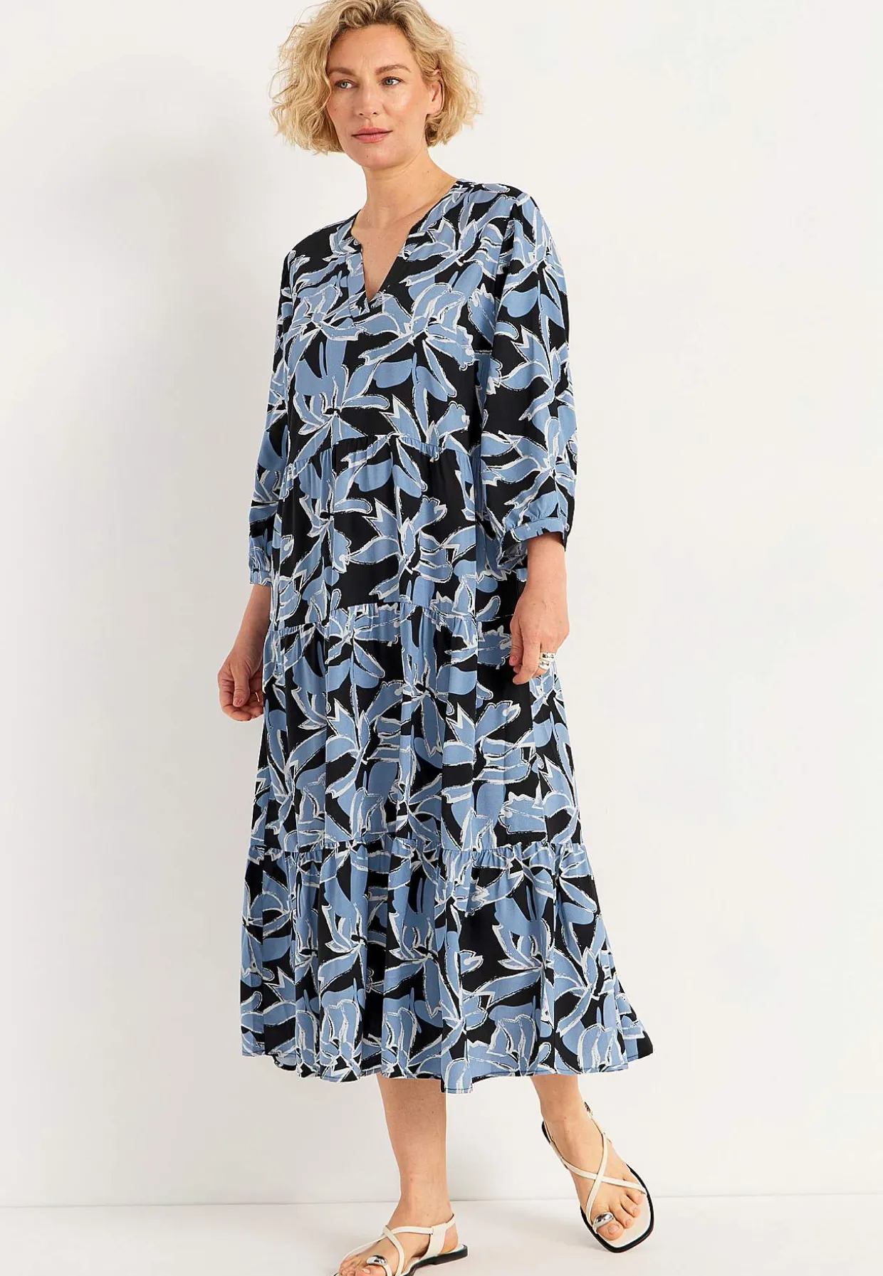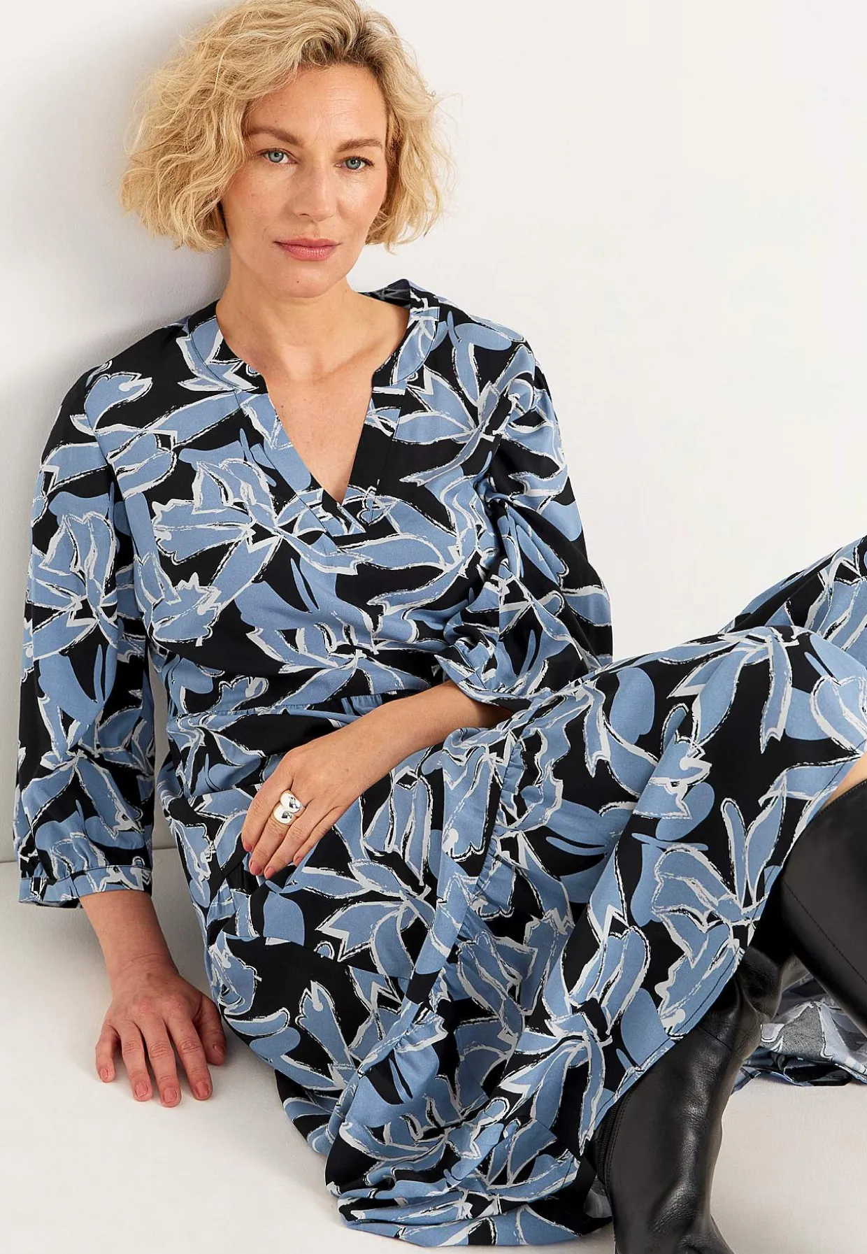 • 3/4 lange, brede ærmer med tynd manchet og knap.