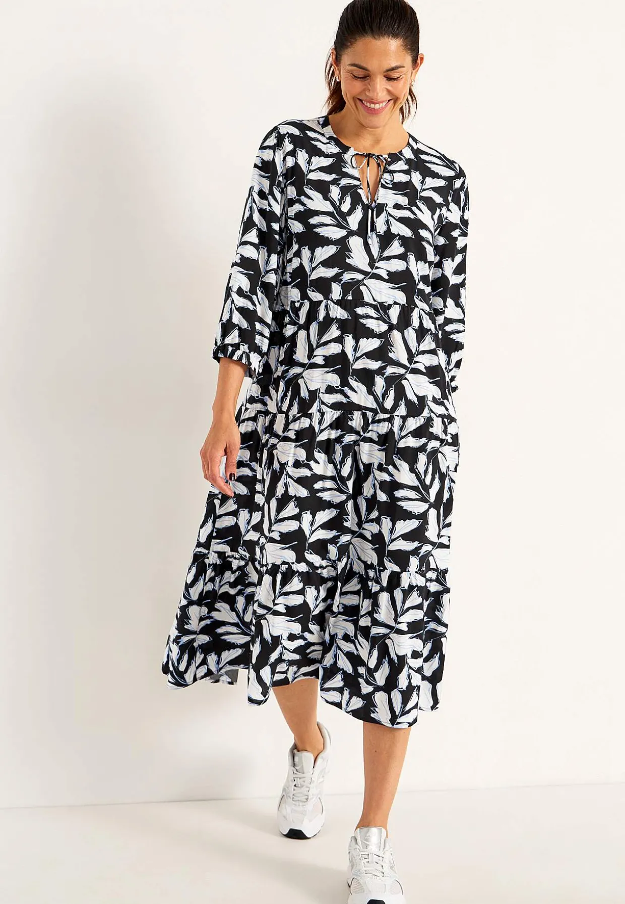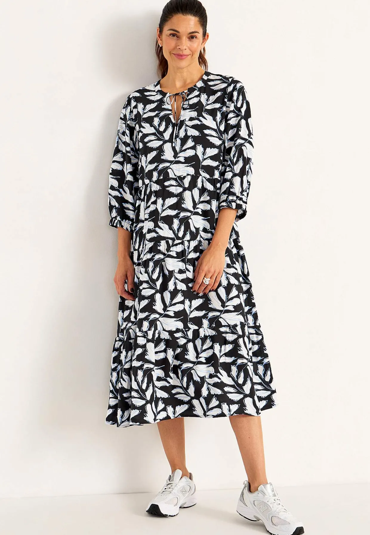 • Brede 3/4 ærmer med elastik ved manchetterne.