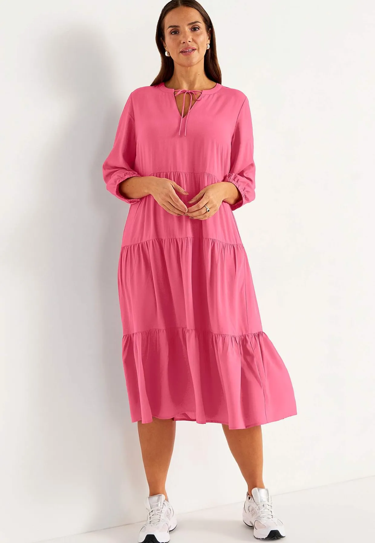 • Brede 3/4 ærmer med elastik ved manchetterne.