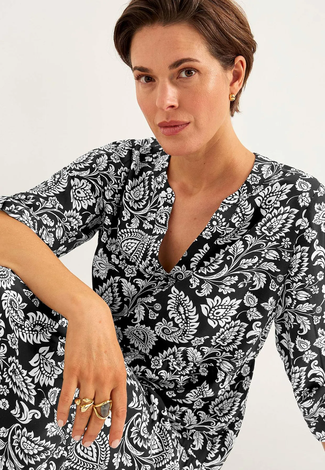 • Foldbare 3/4 ærmer med strop og knap.