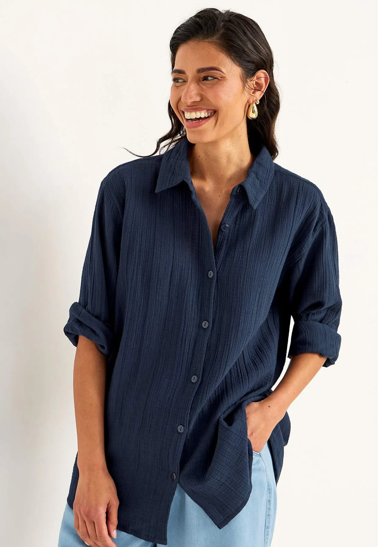 • 3/4 ærme med knap med strop.