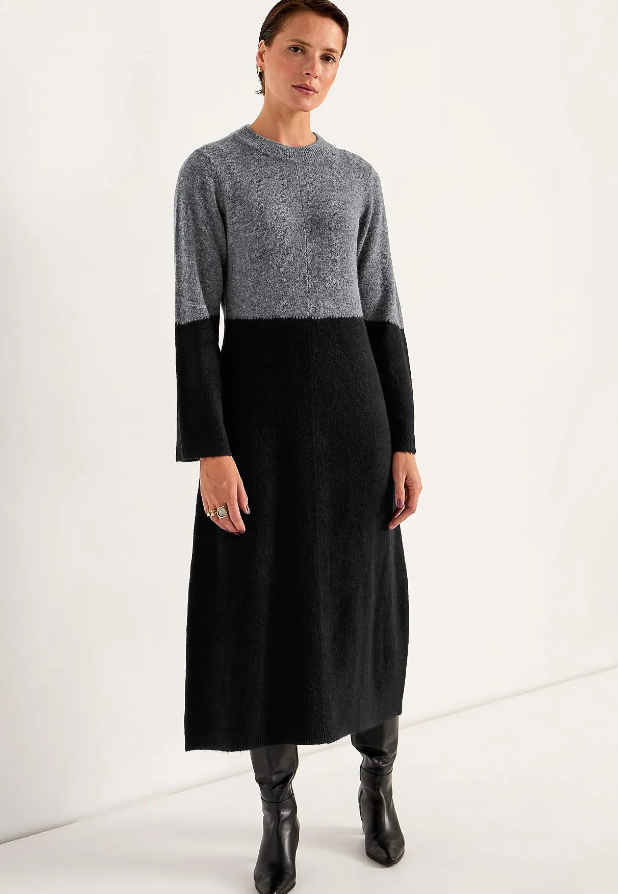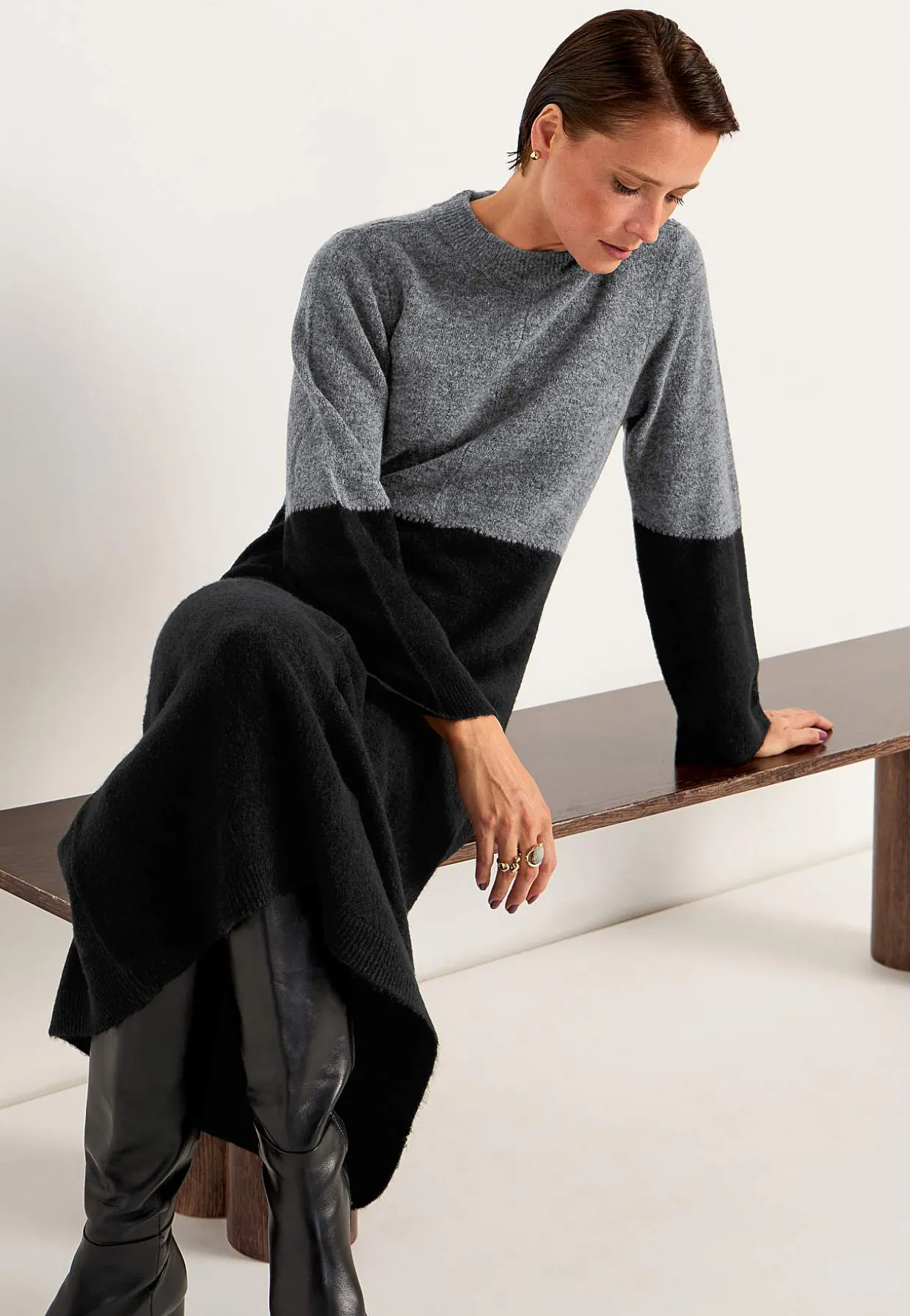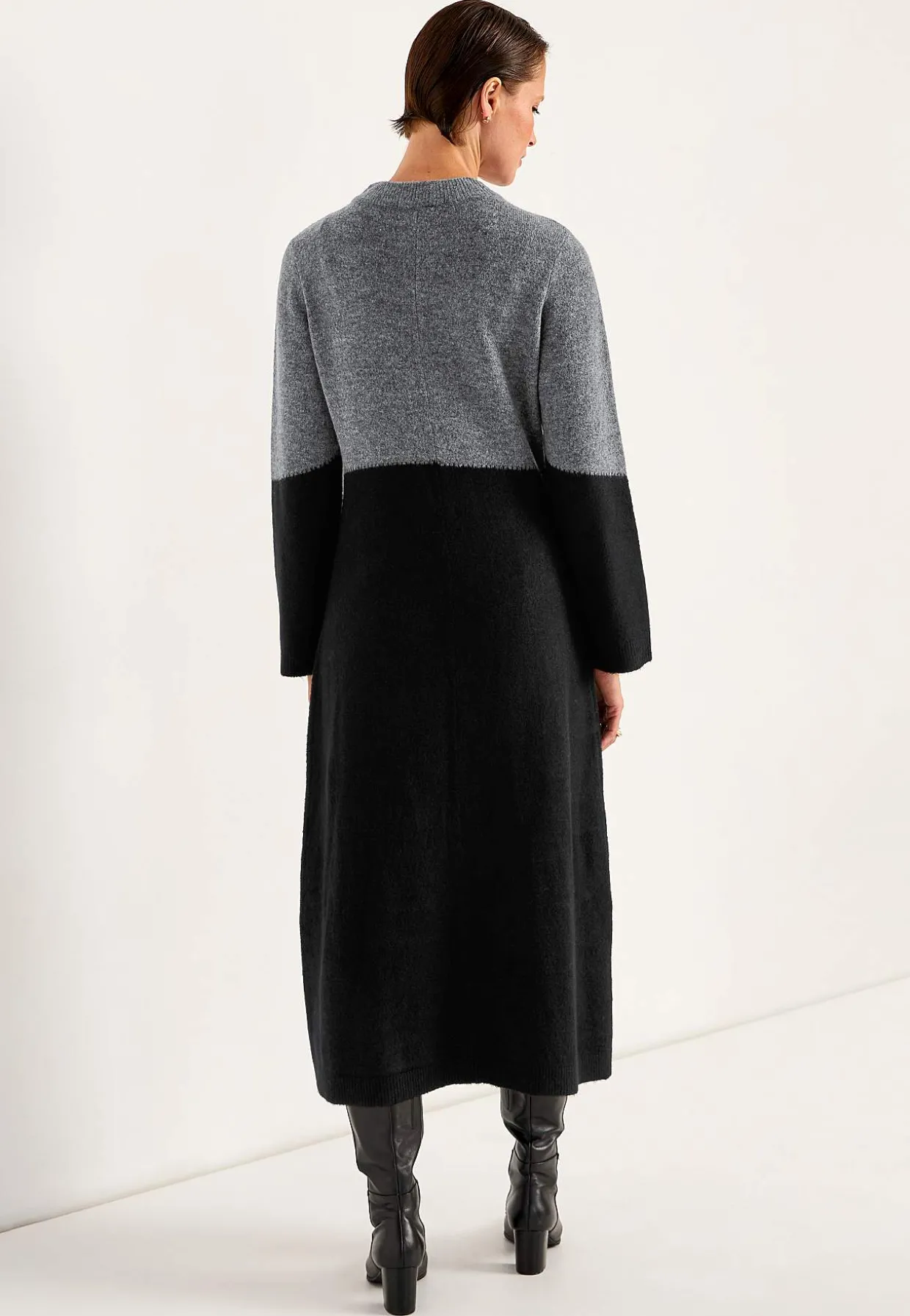 • Klassisk afrundet krave med ribstrikket ribkant.