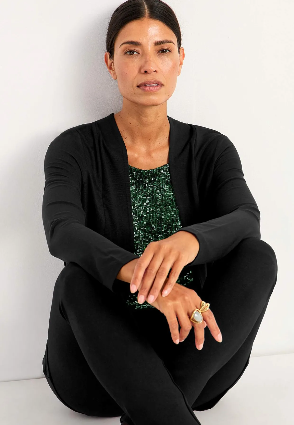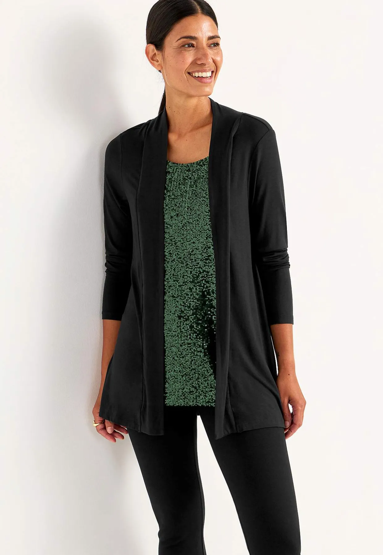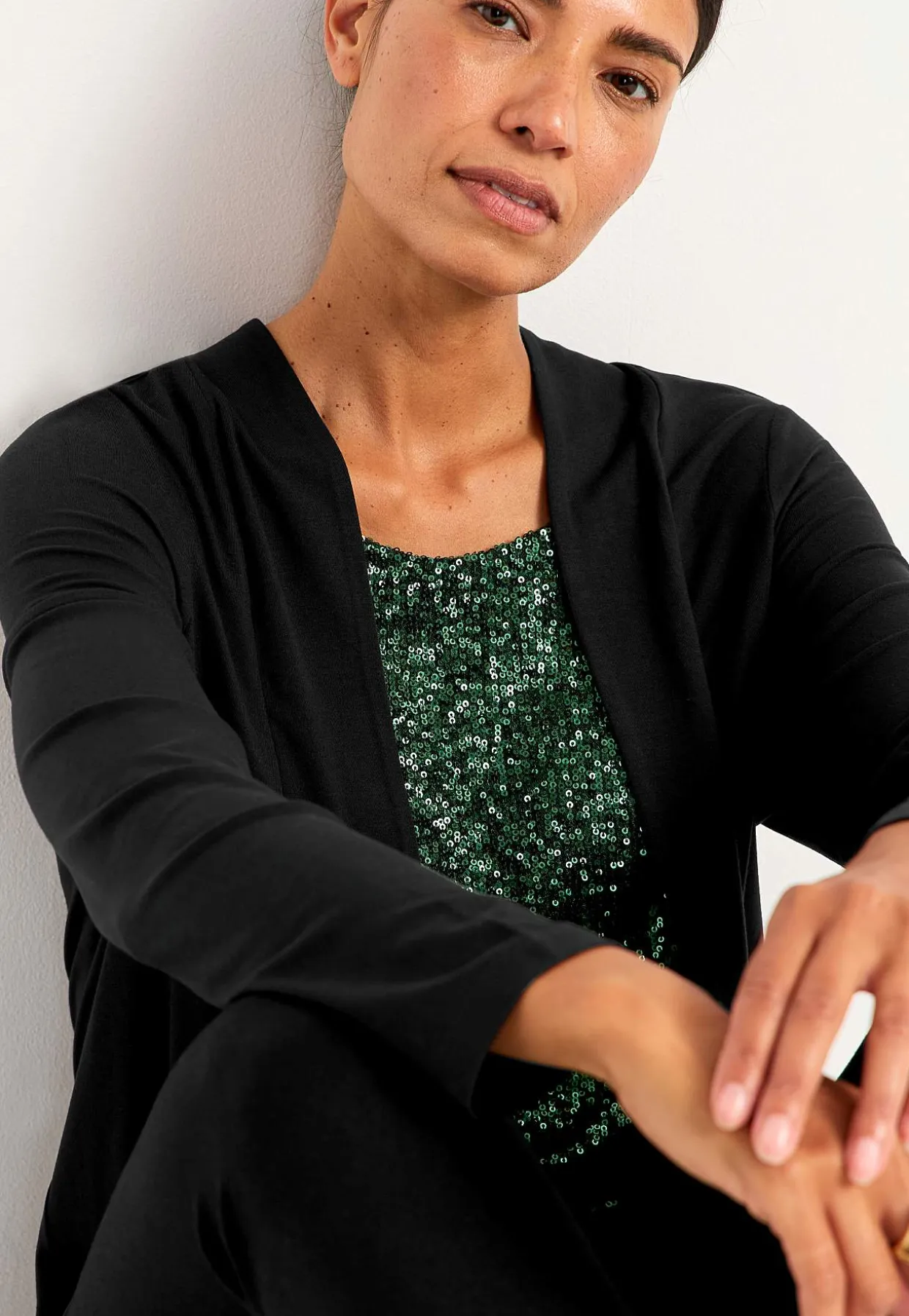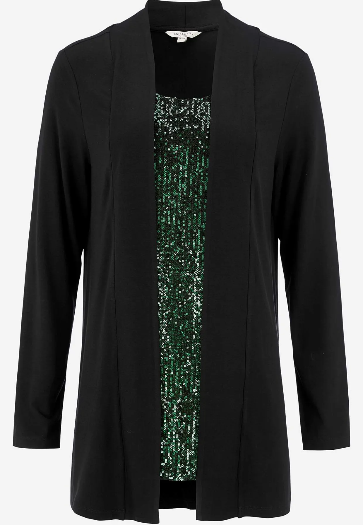 • To-i-en cardigan med foret, elastisk, syet paillet top.