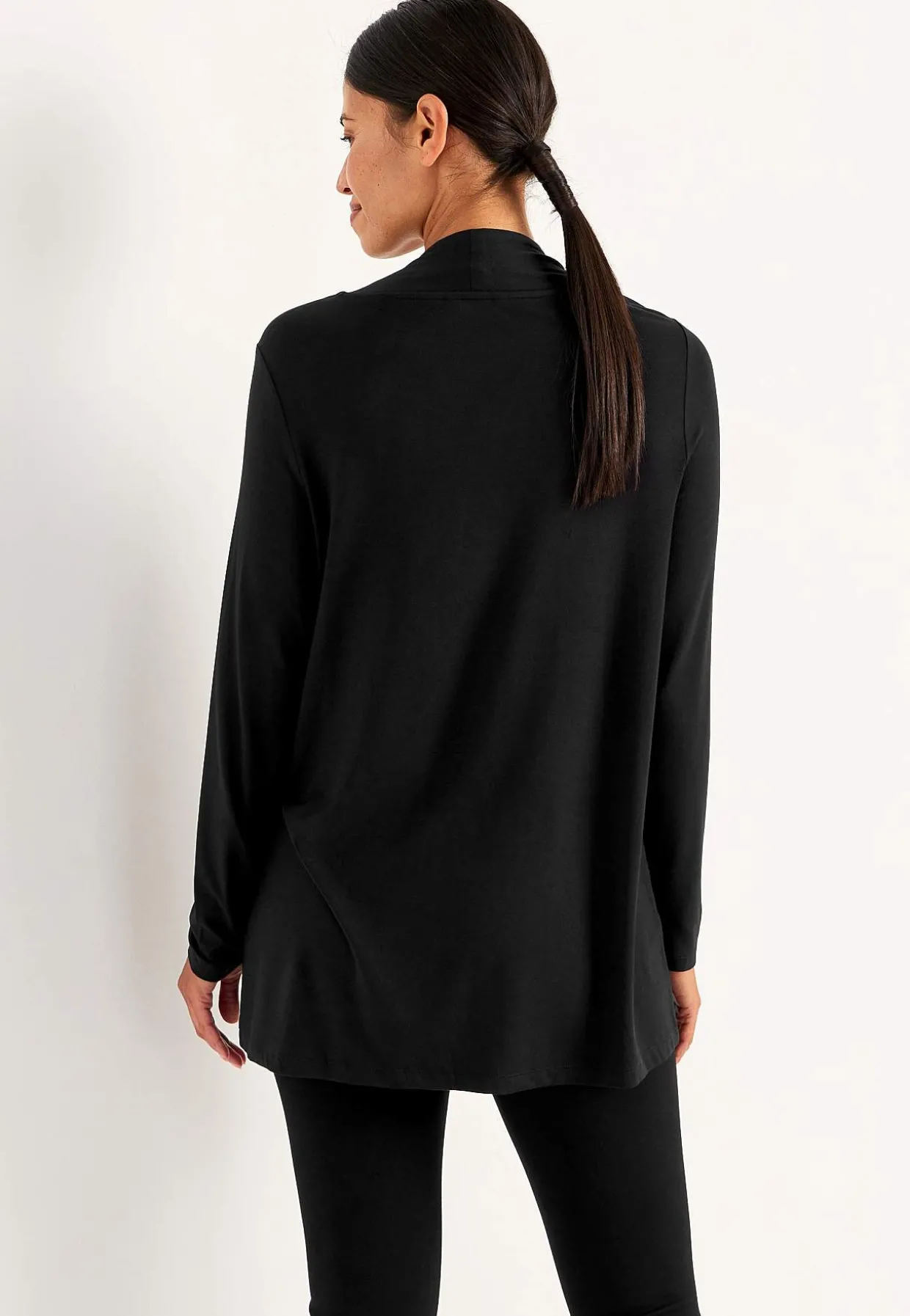 • Ligner en cardigan med en top under.