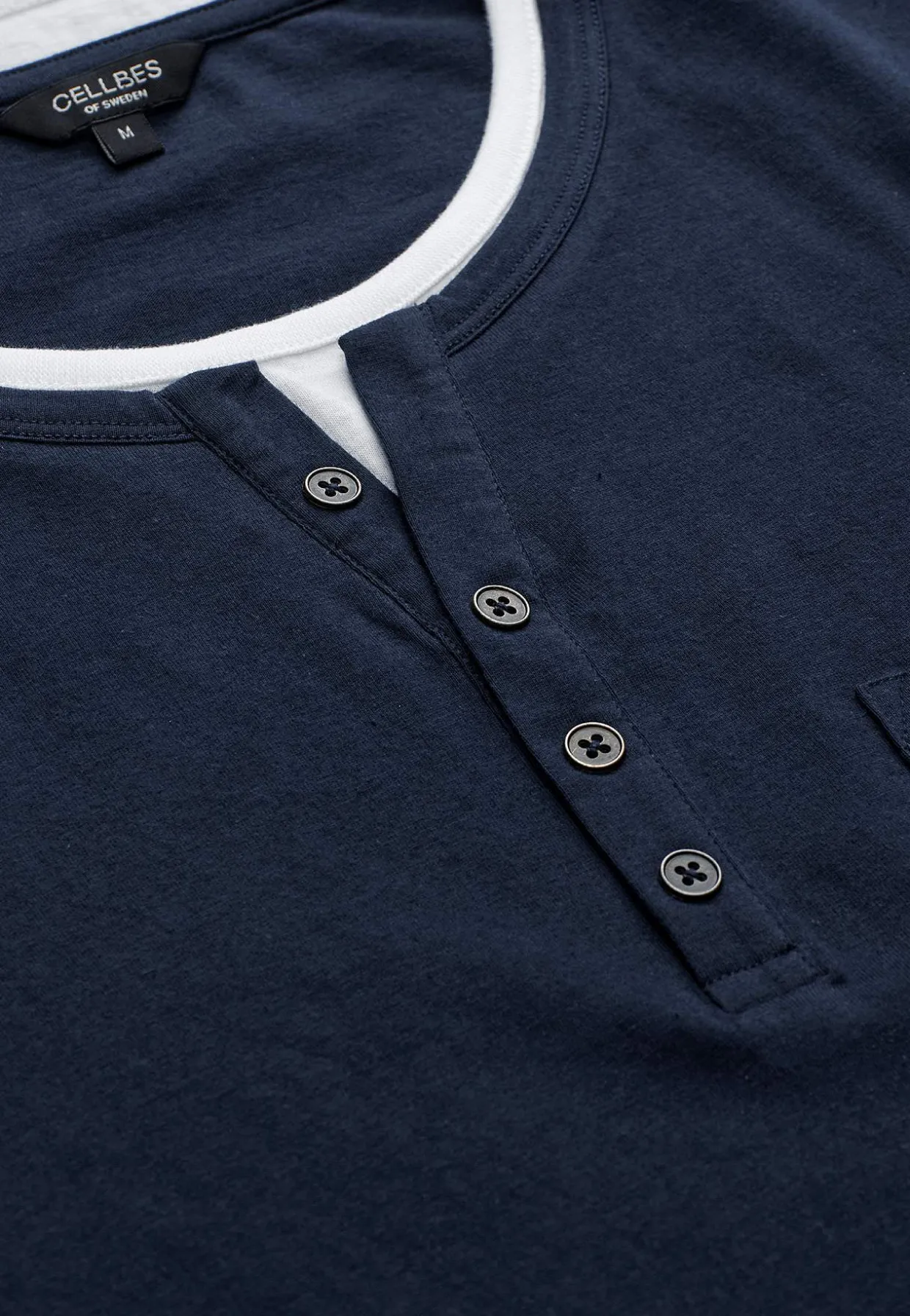 • Kontrastfarvede detaljer ved halsudskæringen og på ærmeafslutningerne.
