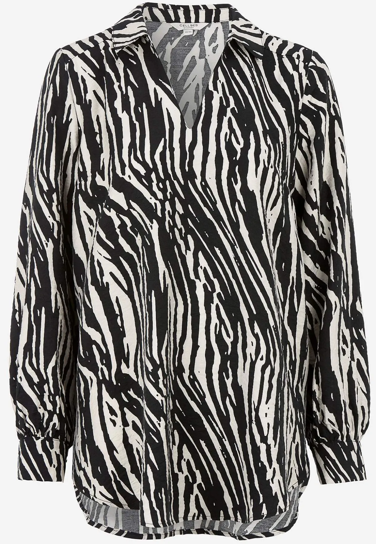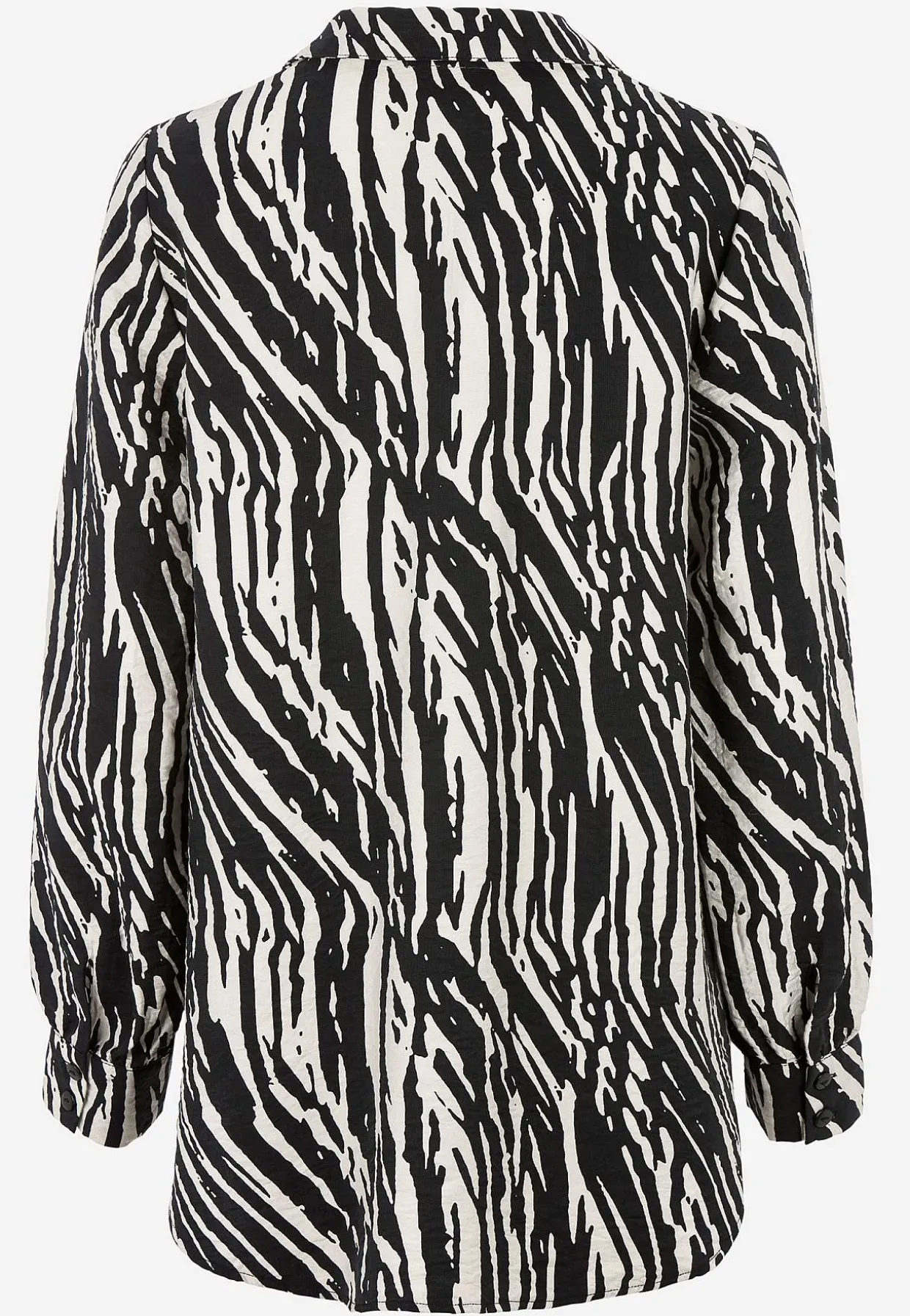 • Lange ærmer med manchet, to knapper og samling ved manchetterne.