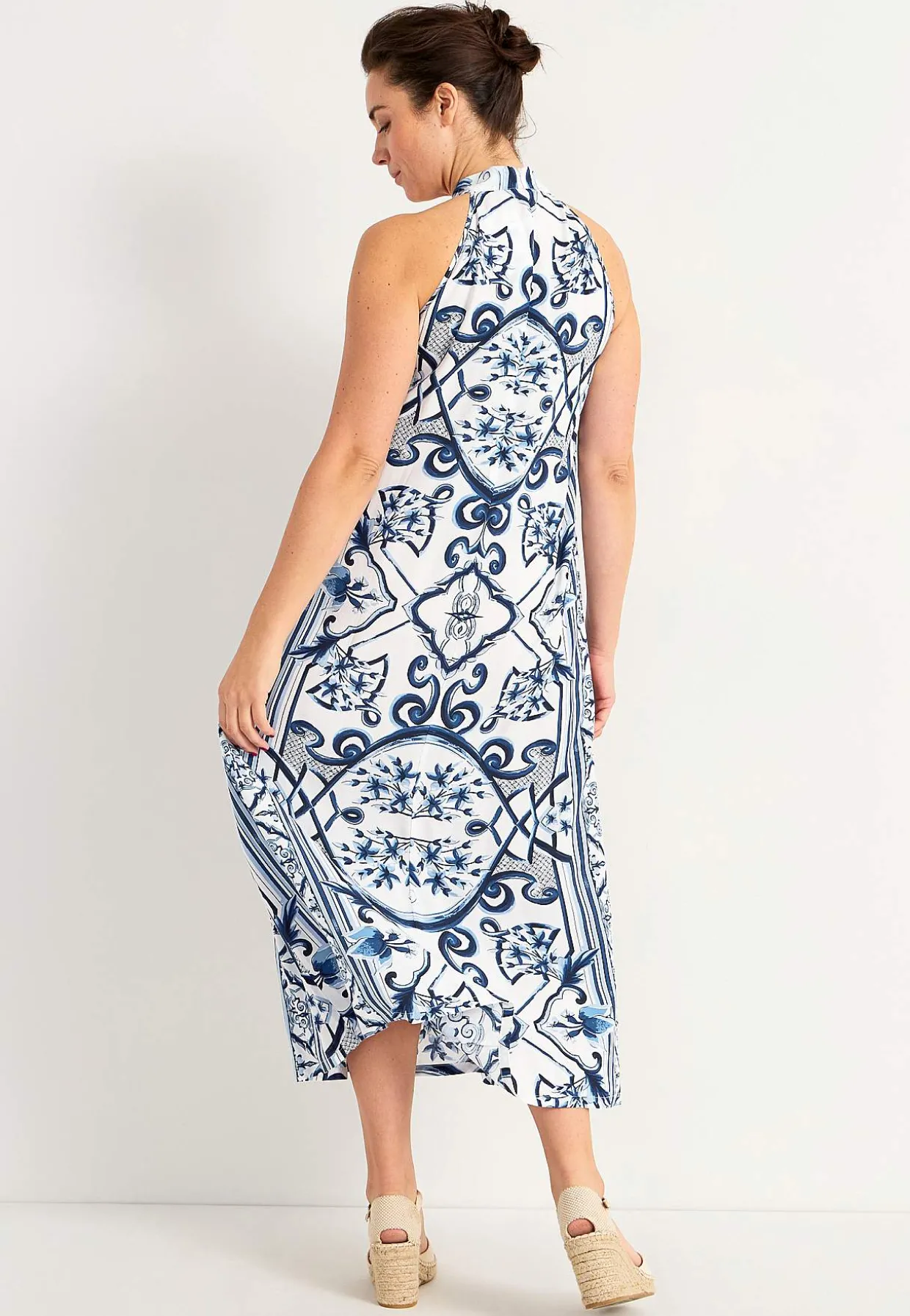 • Høj halsudskæring med snoet halterneckdesign.