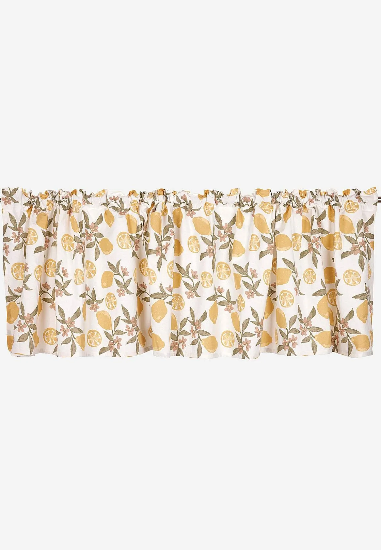 • Gardinkappe med herligt citronprint og små blomster med kronblad.