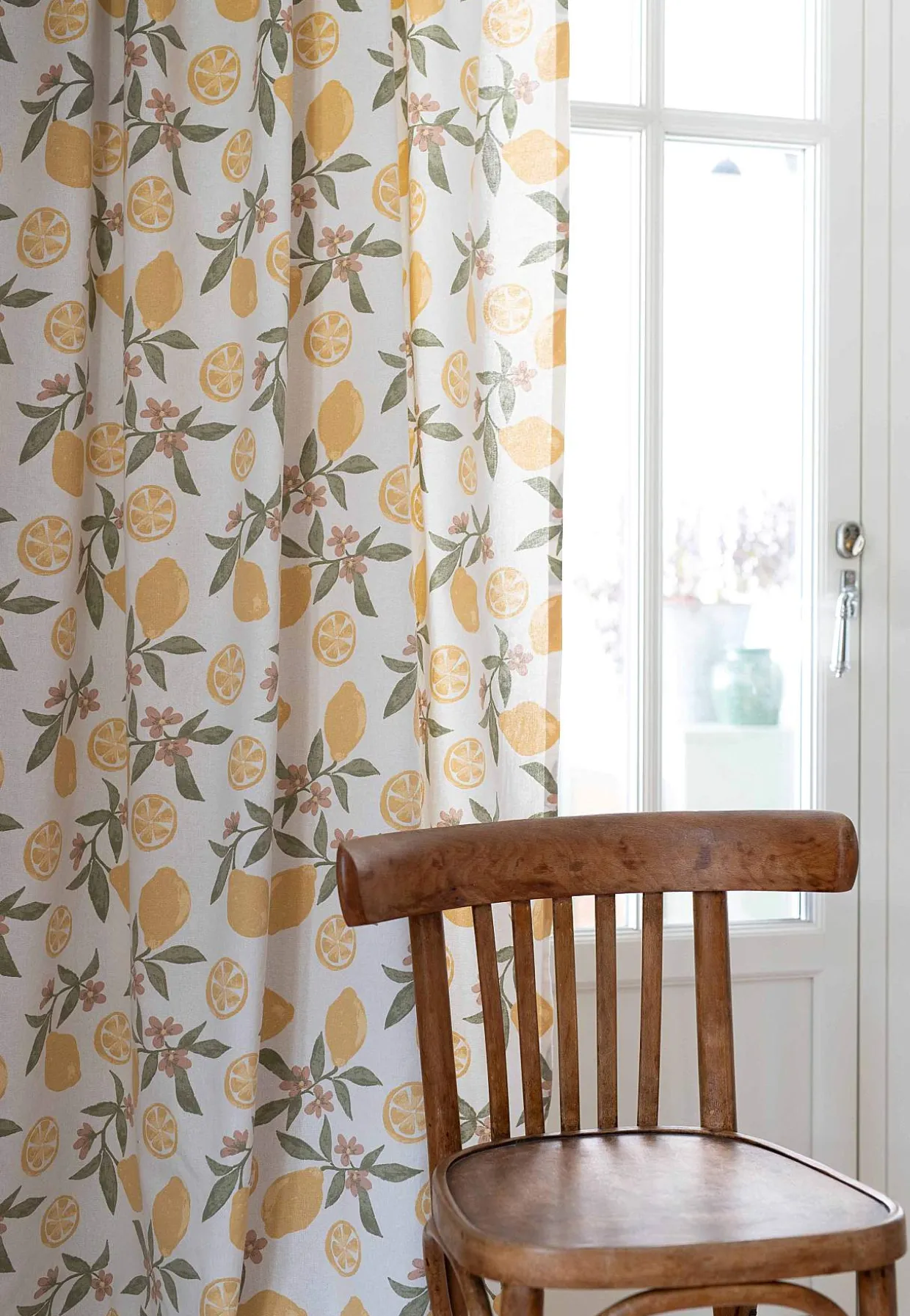 • Panelgardiner med herligt citronprint og små blomster med kronblad.
