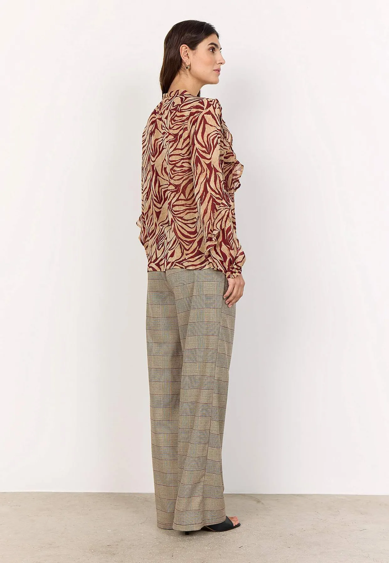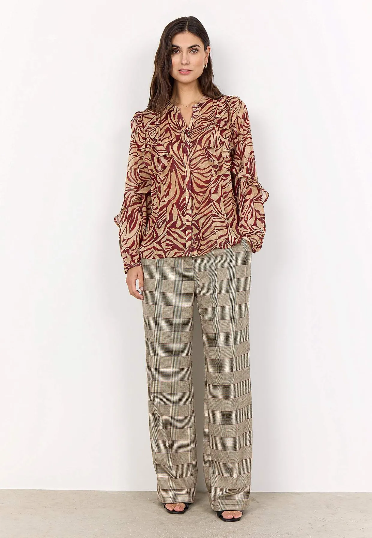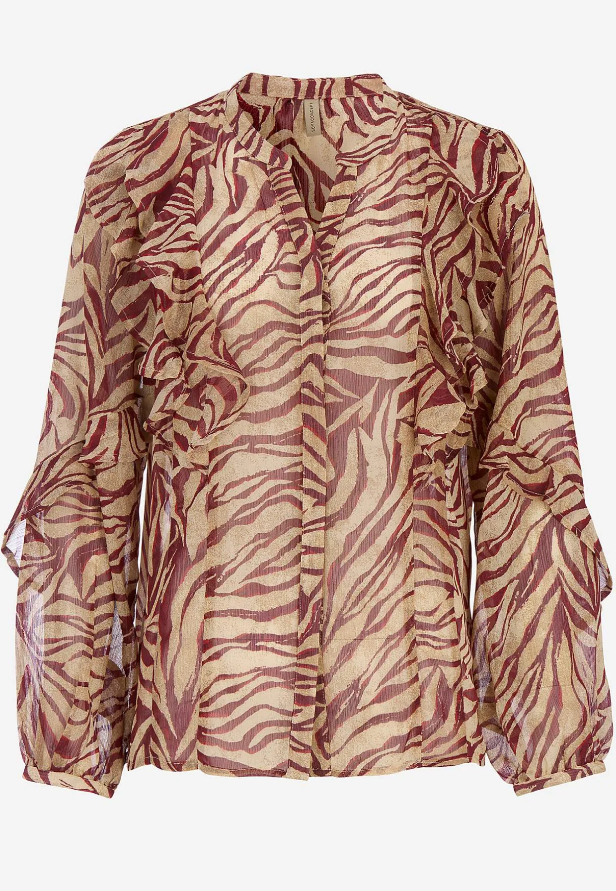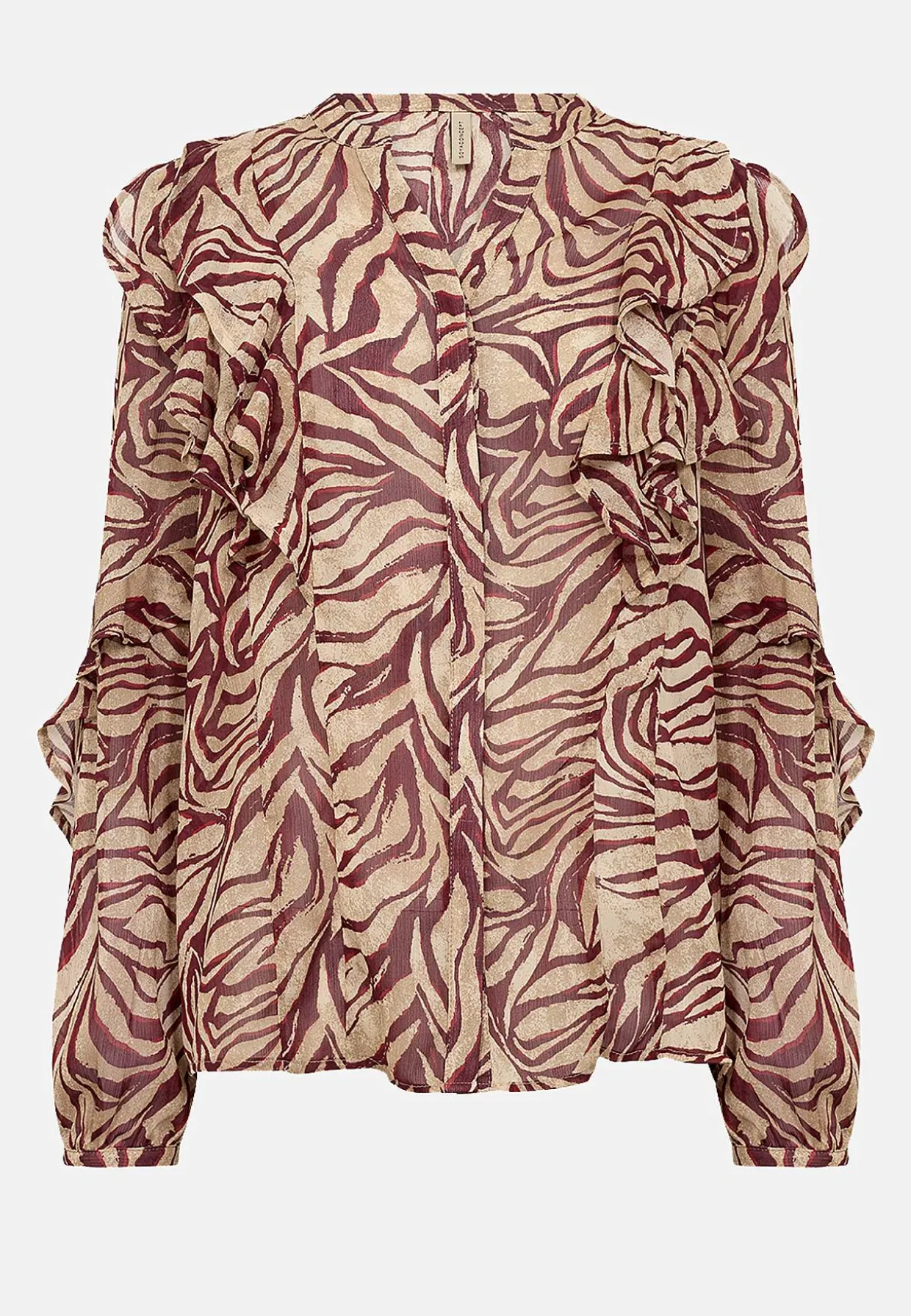 • Vævet, transparent bluse med smukke volanter.