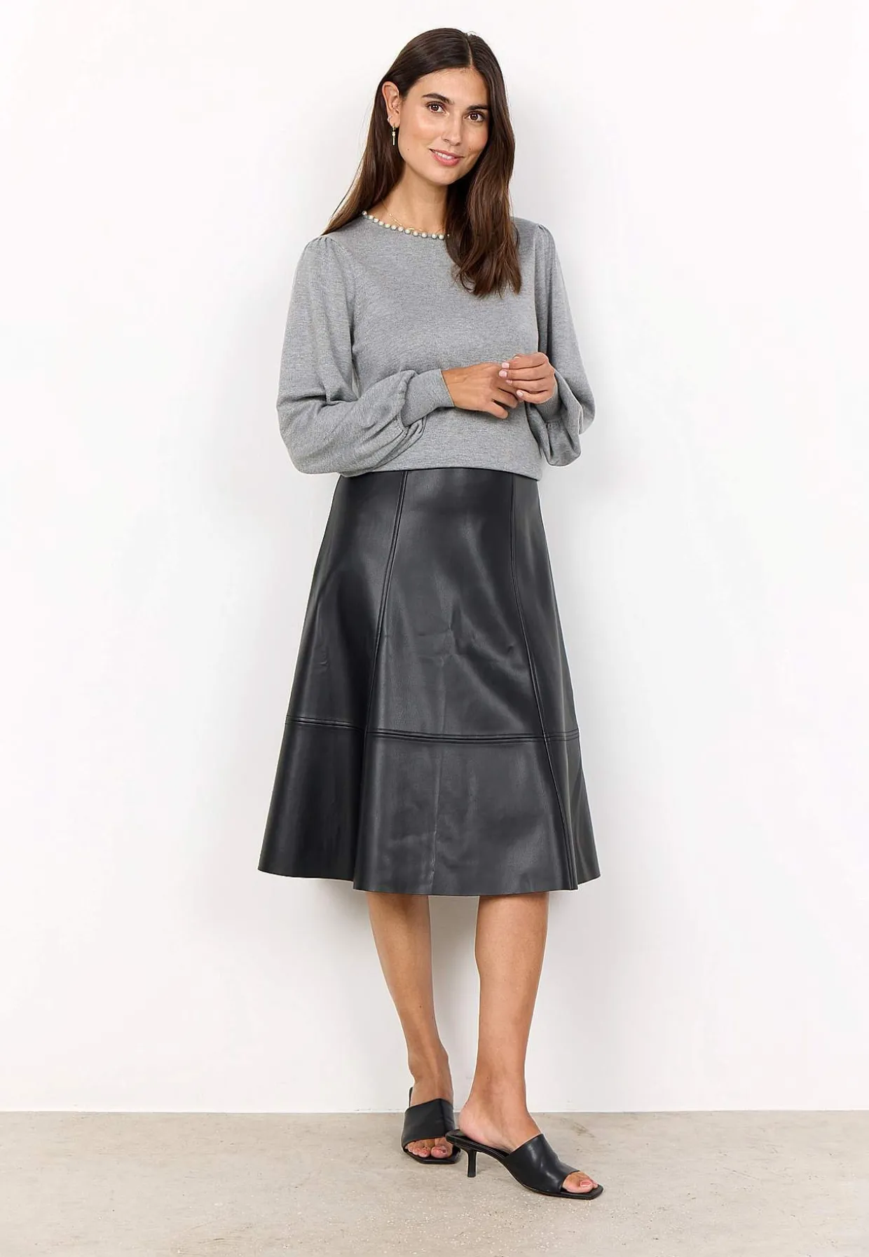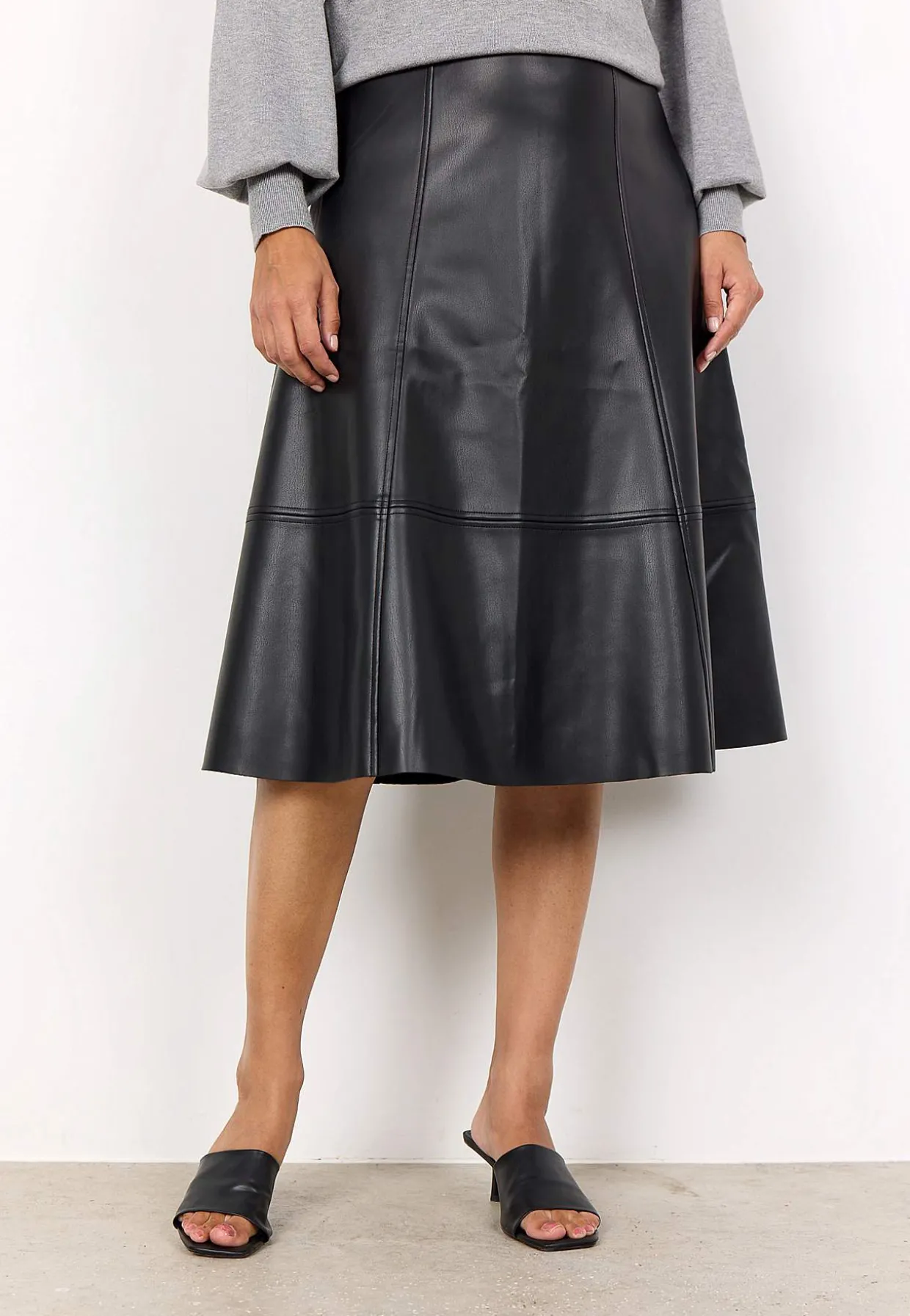 • Nederdel i jævn læderimitation.