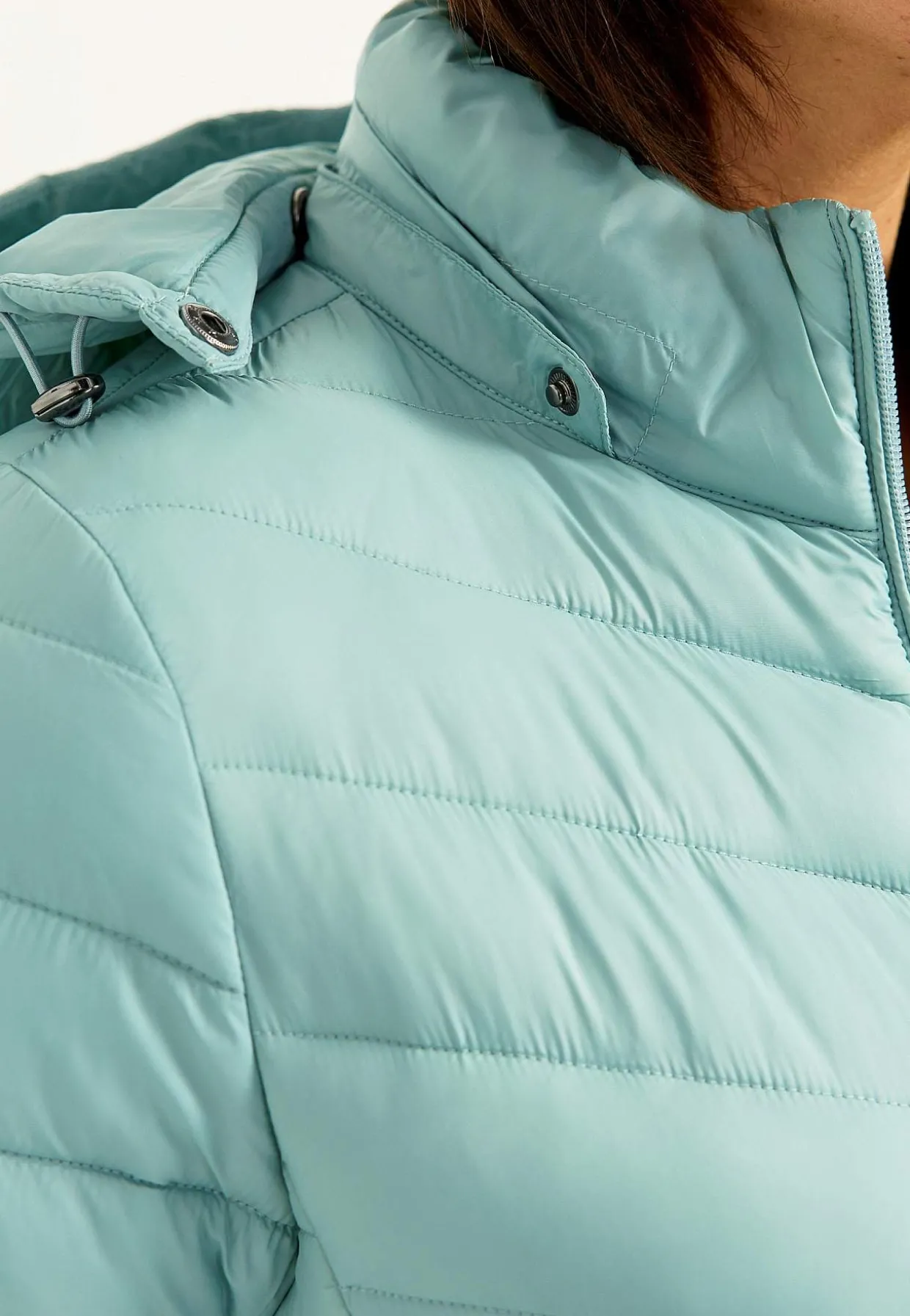 • Aftagelig hætte med træksnøre og stopper.