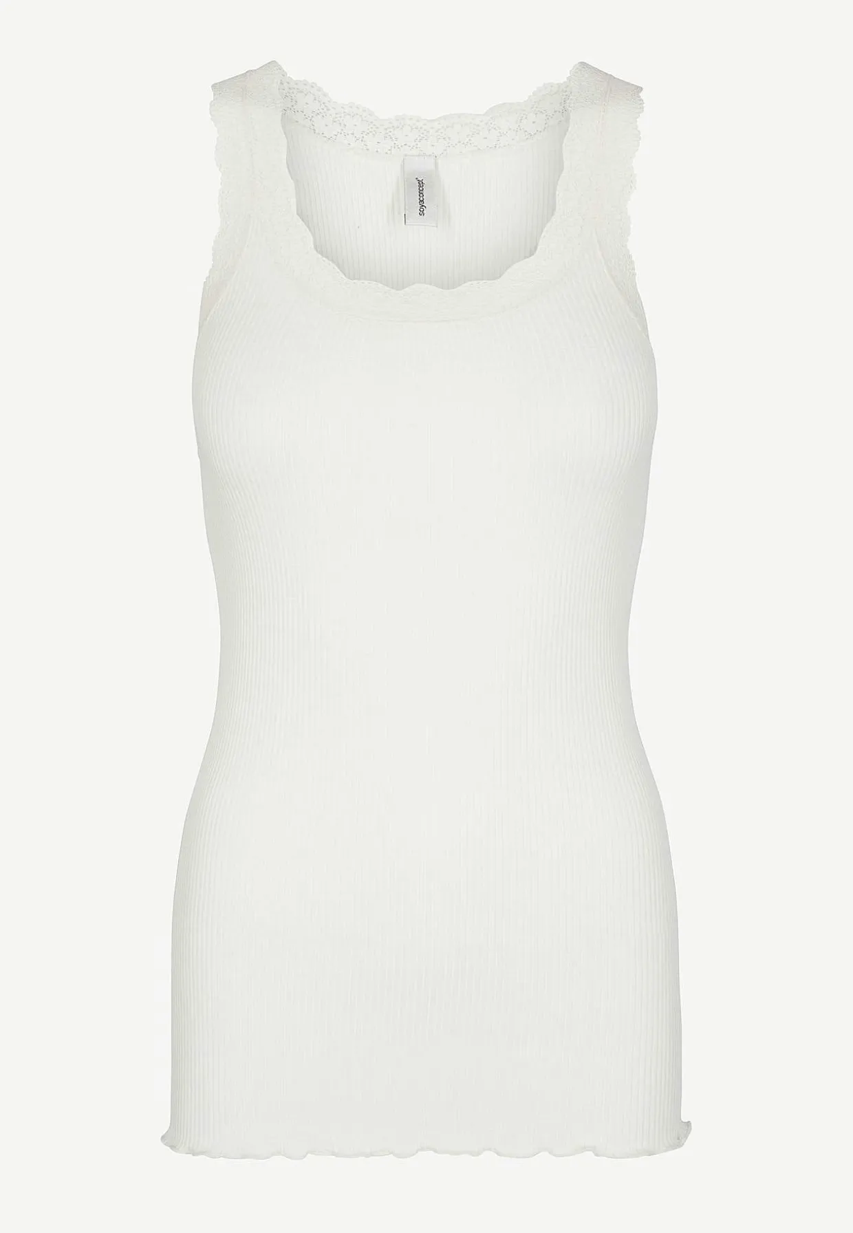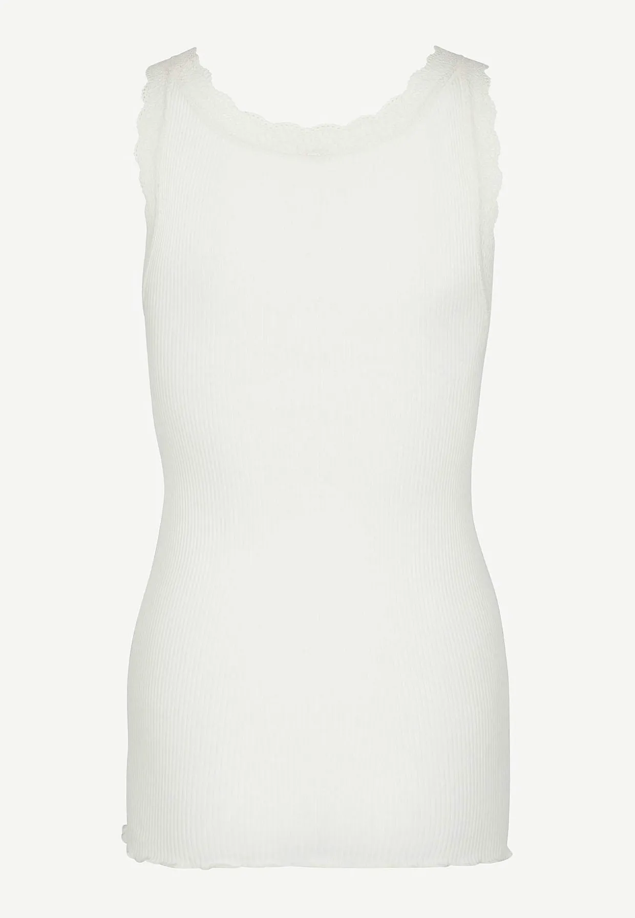 • Rund hals med brede skulderstropper og blondedetaljer.
