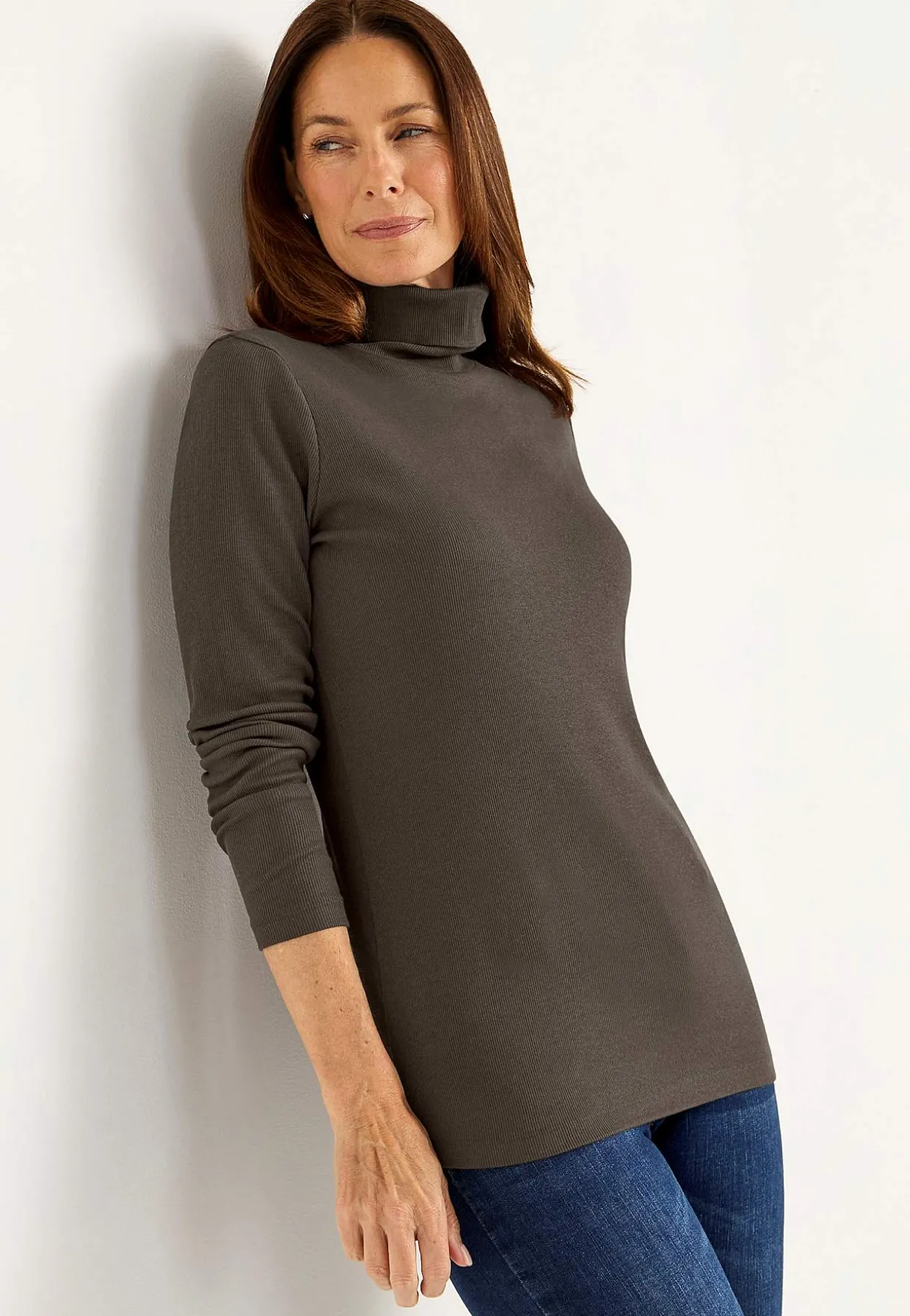• Blød, herlig rullekravetop i økologisk bomuld.