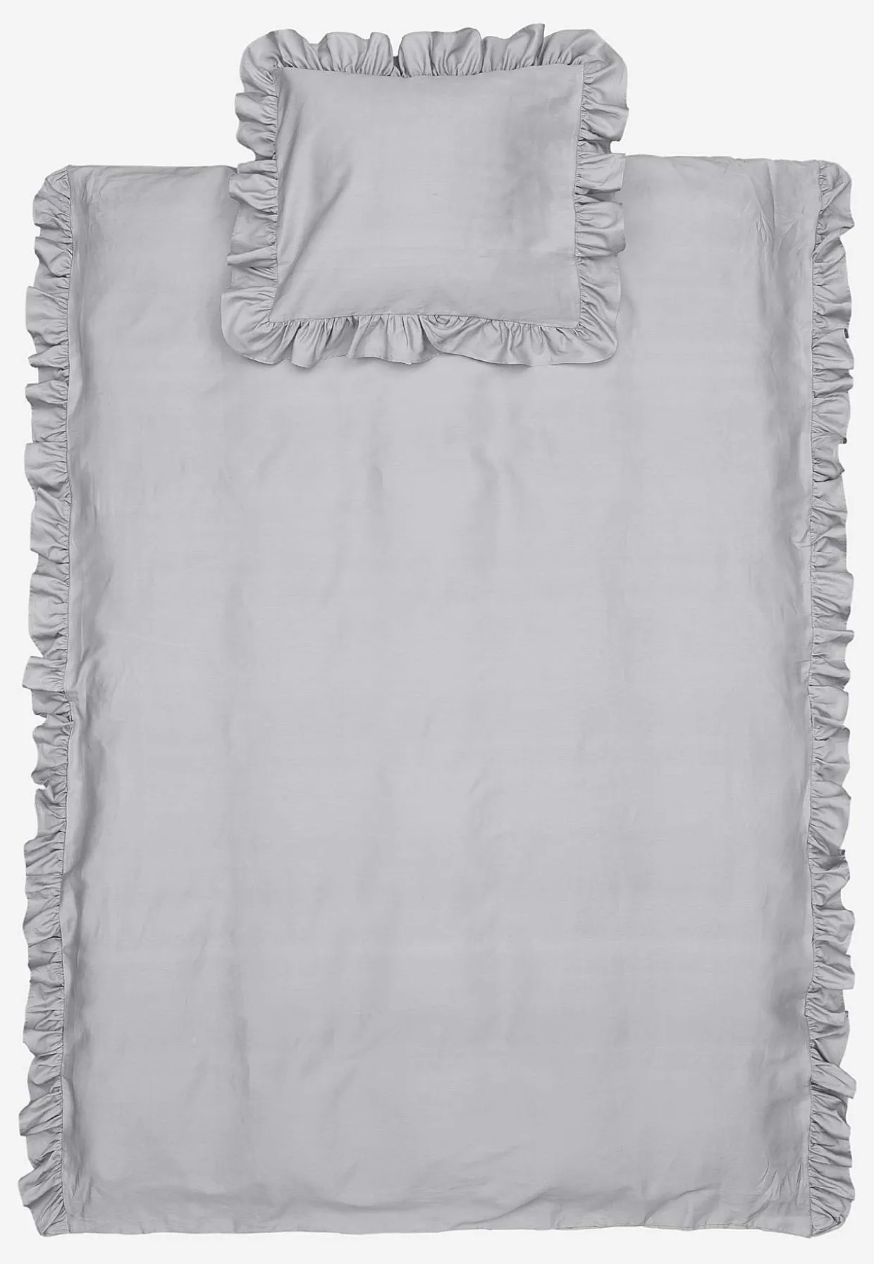 • Dynebetræk 150×210 cm + 8 cm flæse på langsiderne. Pudebetræk 50×60 cm + 8 cm flæse hele vejen rundt.