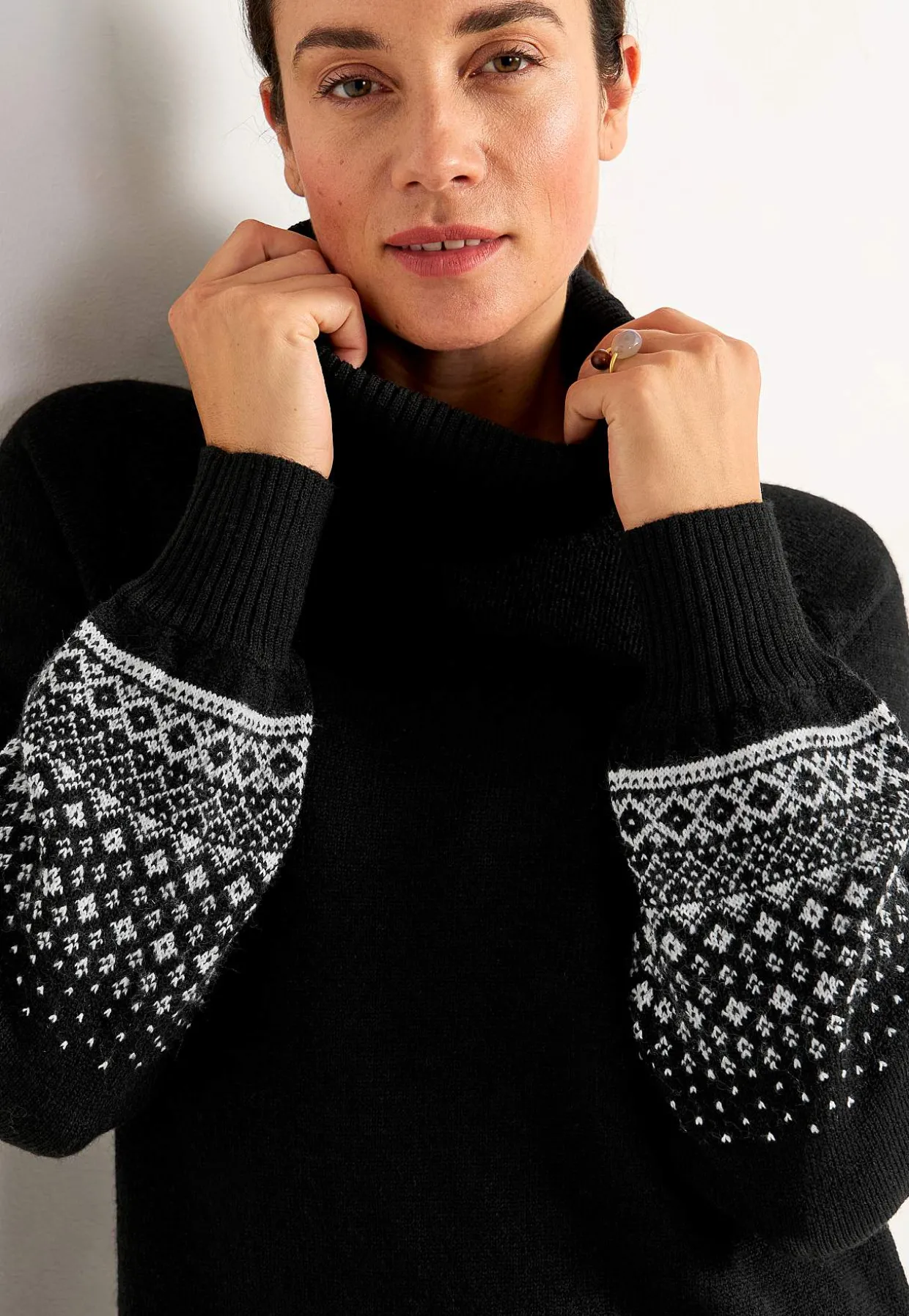 • Jacquardmønstrede ærmeafslutninger.