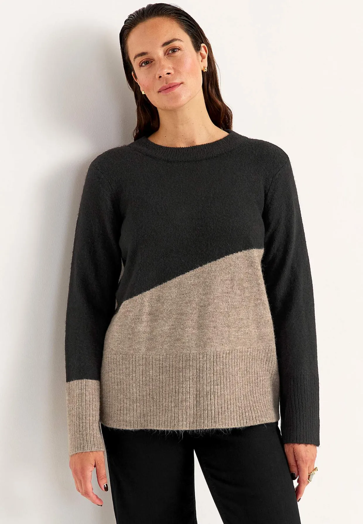 • Rund hals med ribstrik.