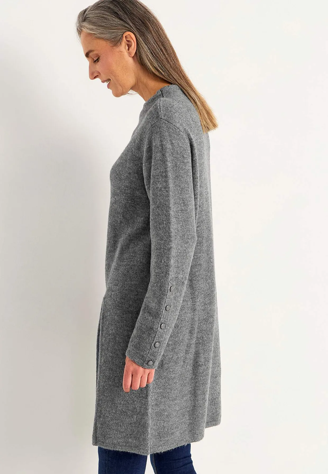 • Lange ærmer med dekorationsknapper ved manchetterne.