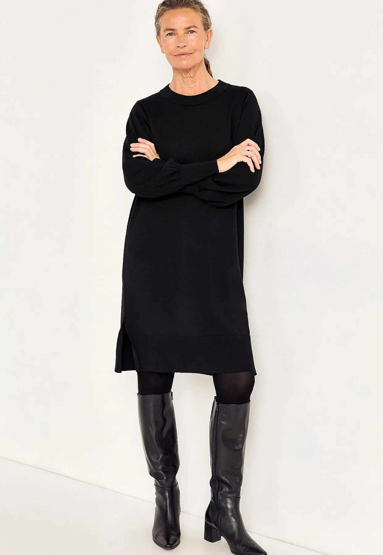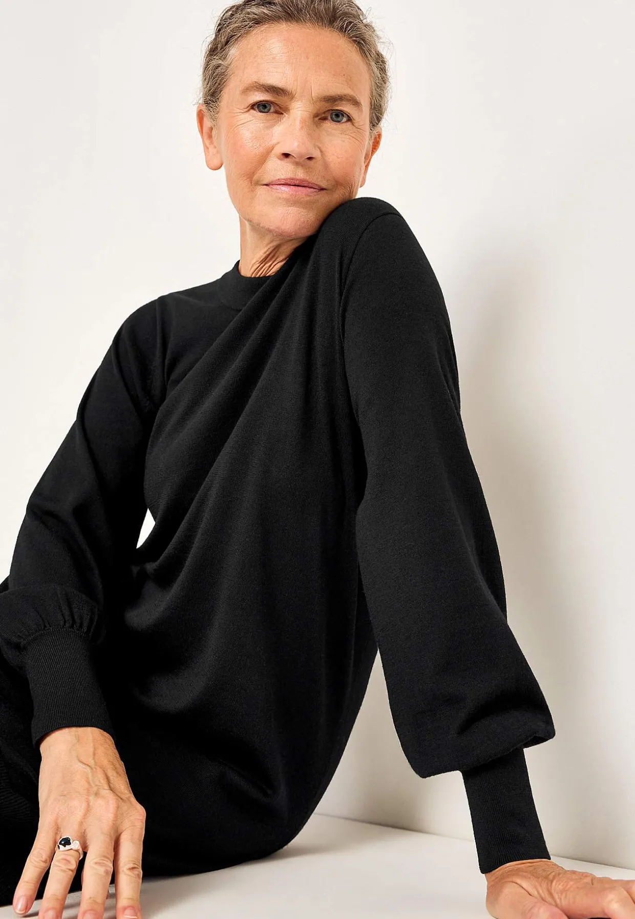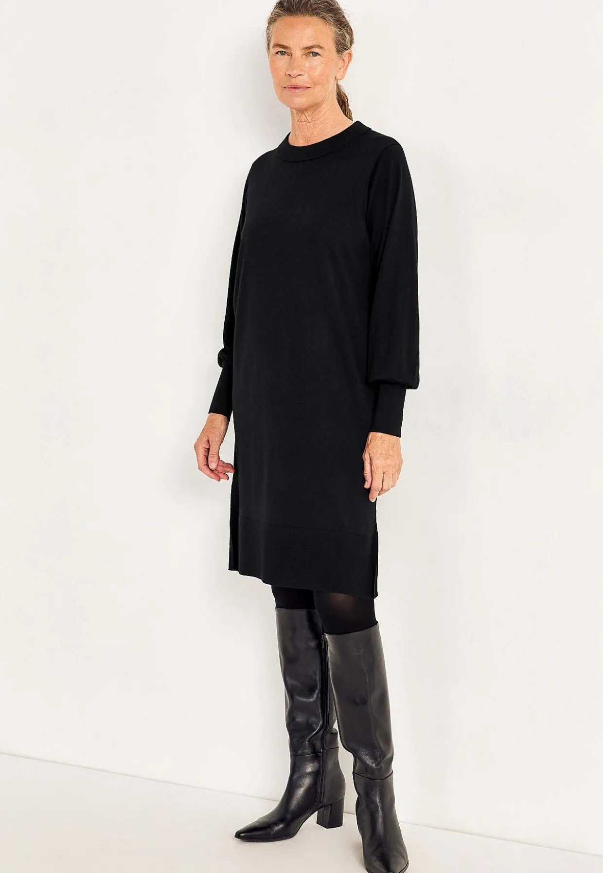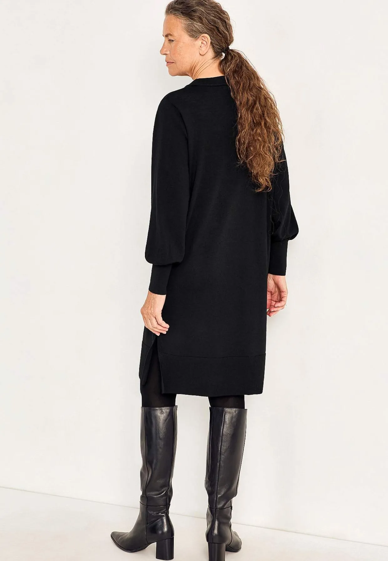 • Klassisk afrundet krave med ribstrikket ribkant.
