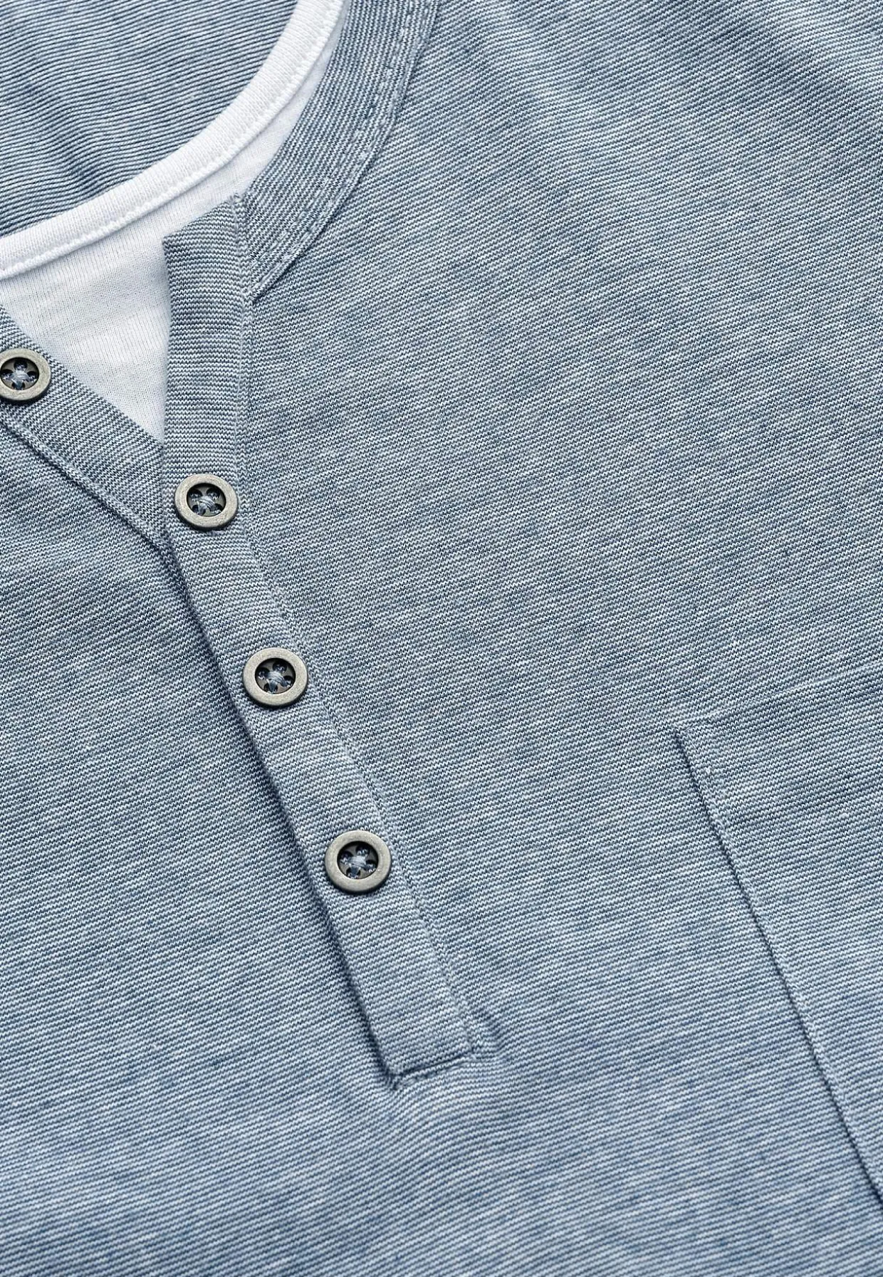 • Rund halsudskæring med lille v-udskæring og en falsk knapåbning.
