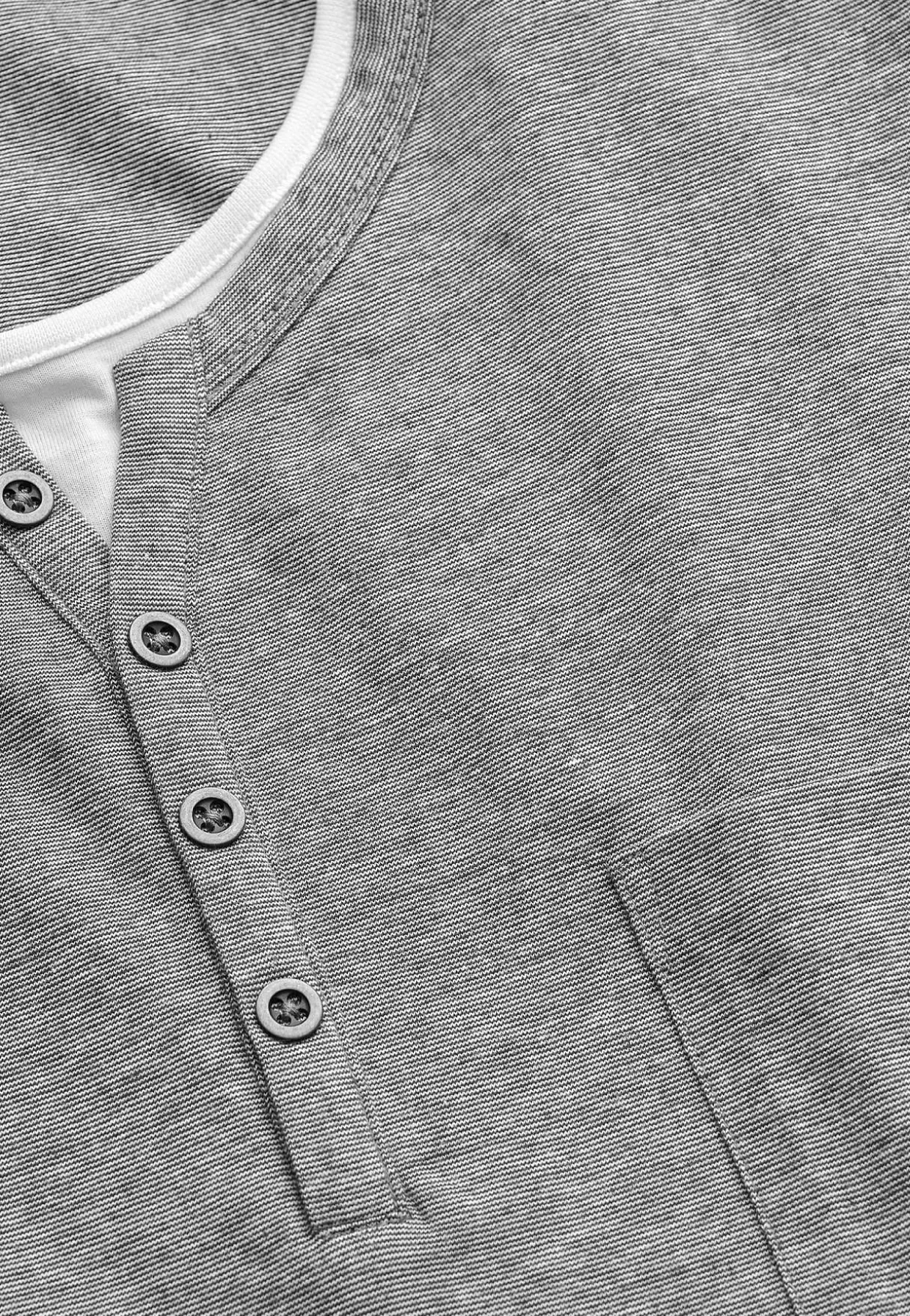 • Rund halsudskæring med lille v-udskæring og en falsk knapåbning.