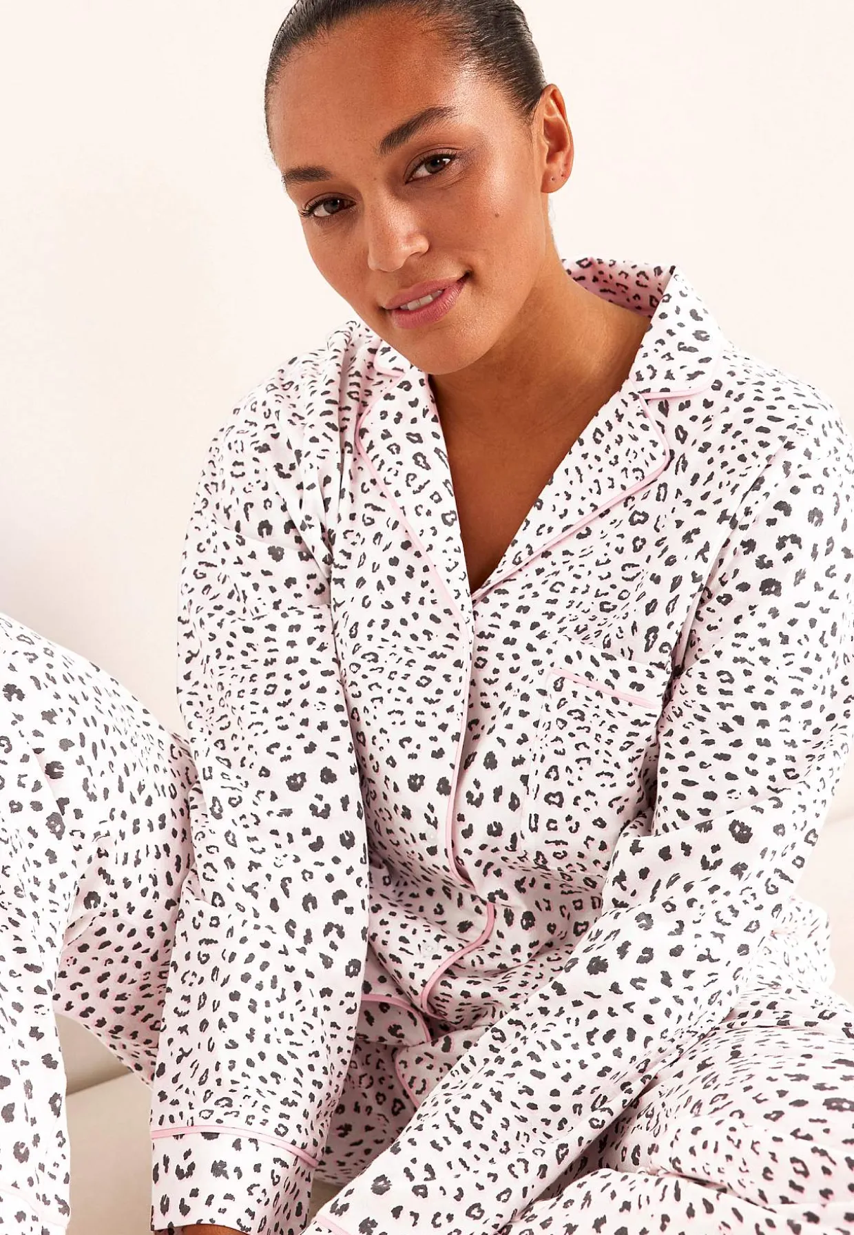 • Mønstret pyjamasoverdel med udskæring med revers.